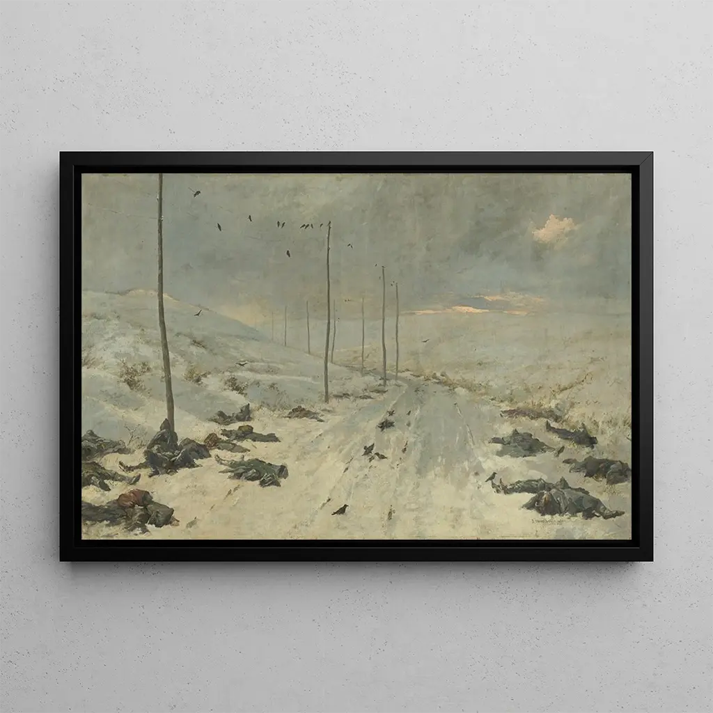 This reproduction of the painting "After the Battle" makes a poignant addition to your interior decor. Whether in a living room, office, or bedroom, this artwork draws the eye and provokes thought. Its printing quality ensures remarkable fidelity to the nuances and details of the original work, while adding emotional depth to your space. By integrating this canvas into your decor, you do not just beautify your interior, but also invite conversation about art, history, and humanity, making this art print both an aesthetic and meaningful choice.