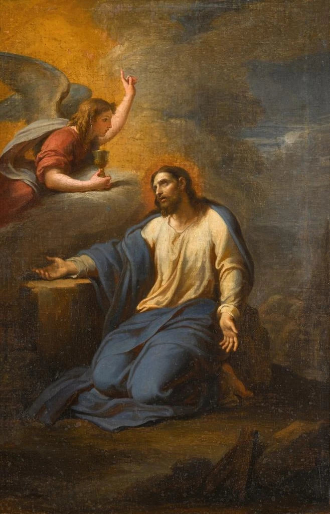 The Agony in the Garden is a work that captures the tragic moment of suffering. The dark colors and shades of green create a heavy, almost tangible atmosphere. The technique of the French School is expressed through delicate brushstrokes that highlight the details of the faces and drapery. The composition, centered on the agonizing figure, immediately draws the eye, while the blurred background evokes a garden that is both beautiful and sinister. This canvas invites reflection on pain and redemption, a true cry from the heart that resonates through the ages.