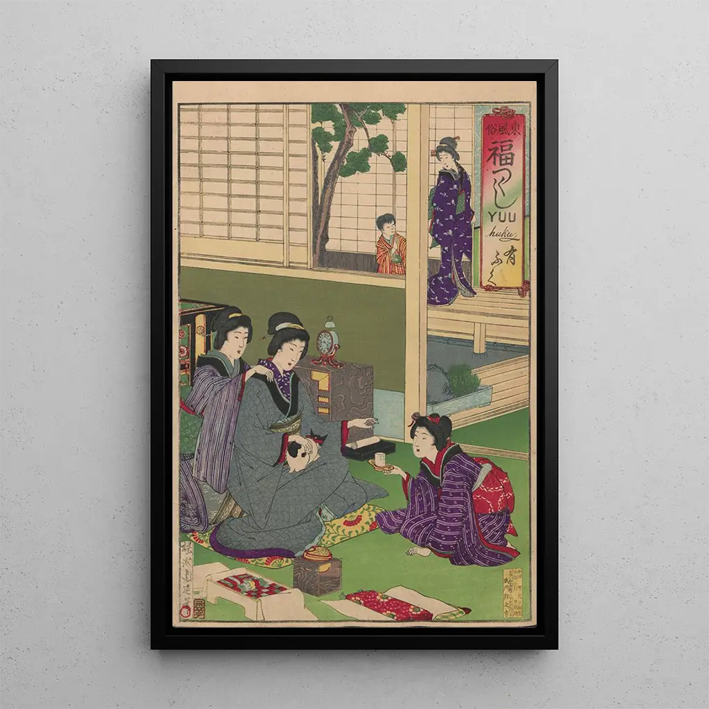"L'Album de Nishikie Pl06" by Toyohara Chikanobu is an artwork that celebrates the fleeting beauty of the seasons and Japanese traditions. The shimmering colors and delicate patterns combine to create a lively scene, where every detail seems to tell a story. The woodblock printing technique, mastered by Chikanobu, allows for remarkable precision and visual depth that captivate the eye. This art print evokes an atmosphere of tranquility, inviting contemplation and escape into a poetic world.