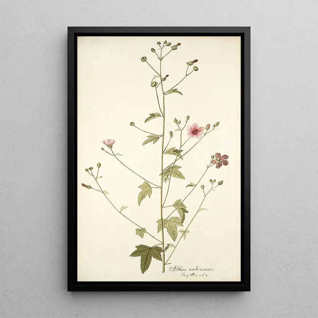 The art print of "Althaea narbonensis" is a decorative piece that harmoniously fits into various spaces, whether a living room, an office, or a bedroom. Its print quality guarantees exceptional fidelity to the details of the original artwork, allowing appreciation of every nuance and texture. The aesthetic appeal of this canvas lies in its ability to bring a touch of nature and serenity to your interior. By choosing this art print, you give your decoration a refined botanical accent that will delight your guests and enrich your daily environment.
