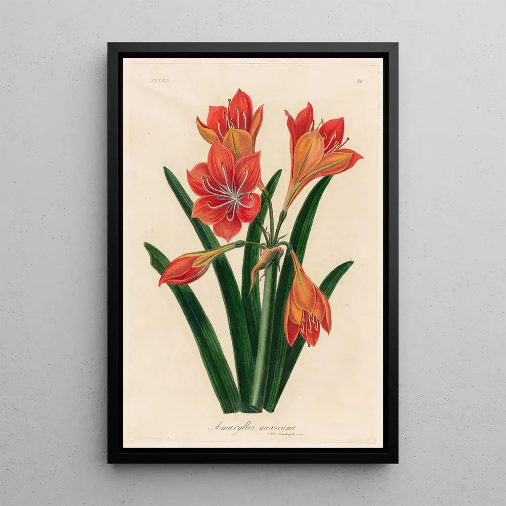 The art print "Amaryllis mexicana" is an ideal choice to enhance your interior, whether in a living room, office, or bedroom. Its print quality and fidelity to the original colors make it a centerpiece that captures the eye and inspires admiration. This artwork adds a touch of freshness and vitality to your decor, while evoking the splendor of nature. By choosing this canvas, you opt for a piece that combines aesthetics and culture, perfect for art and botany enthusiasts.