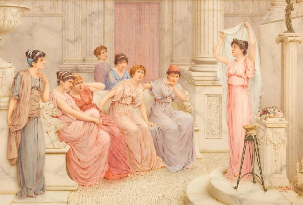 The art print of Ancient Rituals by William Anstey Dolland evokes an atmosphere filled with mystery and serenity. The earthy tones and shades of green blend harmoniously to create a landscape that feels both familiar and enigmatic. The artist's technique, which employs delicate brushstrokes, brings to life a scene where time seems suspended. The human figures, though small within the frame, are charged with emotional depth that invites contemplation. This painting transports the viewer to a world where rituals and nature intertwine, revealing timeless beauty.