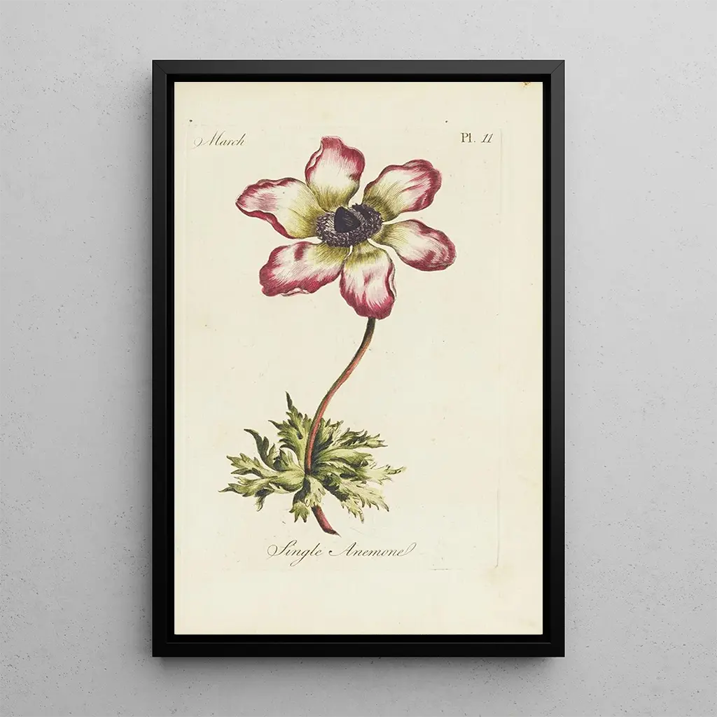 The art print "Anémone simple" is an ideal decorative choice for various spaces such as the living room, office, or bedroom. Its print quality and fidelity to the original work by Carington Bowles make it a refined art element that draws the eye. This painting, with its soft colors and floral theme, brings a touch of nature to your interior, creating a warm and welcoming atmosphere. By choosing this canvas, you opt for a piece that not only enhances your decor but also evokes the ephemeral beauty of flowers, adding a poetic note to your daily life.