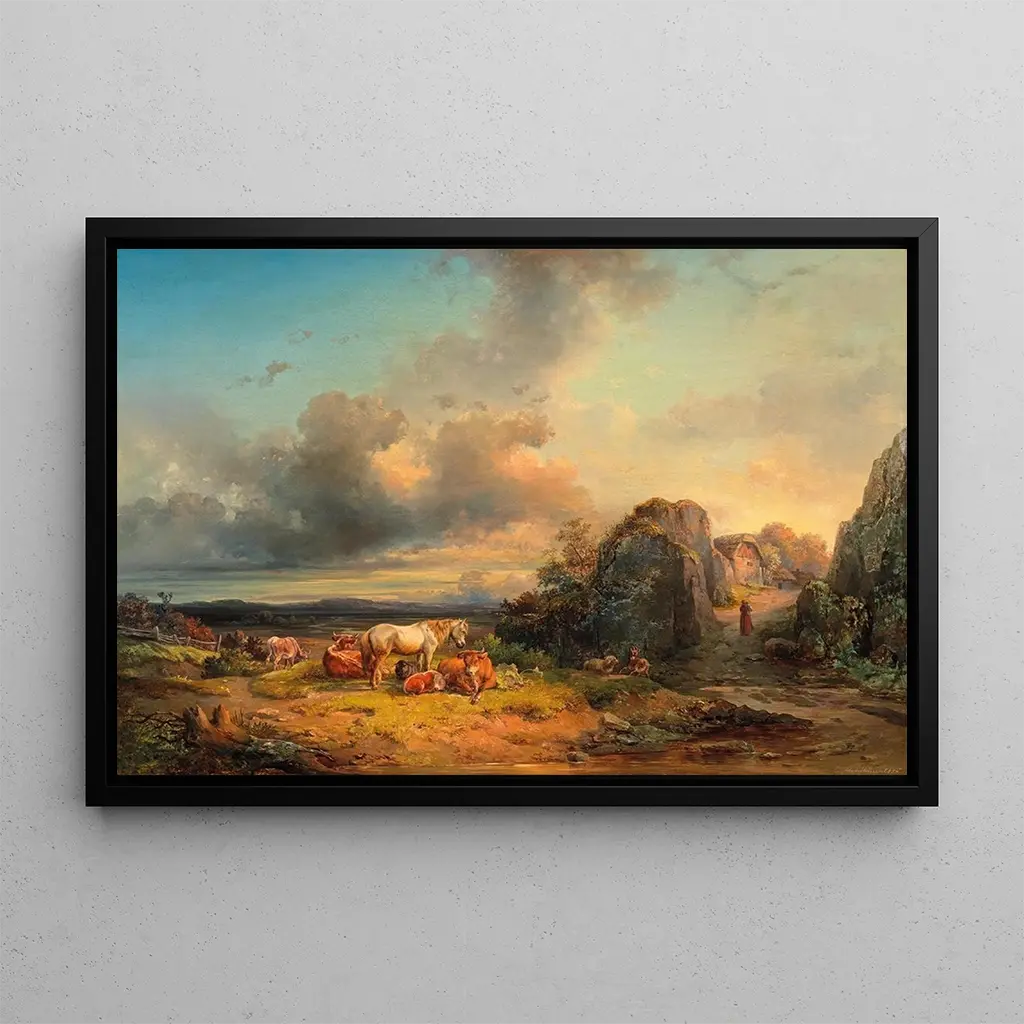 Animals in the landscape: a harmony between fauna and flora The art print "Animals in the landscape" by Edmund Mahlknecht evokes a bucolic scene where nature flourishes in complete tranquility. The soft colors and shades of green blend with touches of brown and blue, creating a serene and calming atmosphere. Mahlknecht's technique, characterized by delicate brushstrokes, brings life to the animals that populate this painting. Each creature, whether a majestic deer or a flying bird, seems to blend harmoniously into this idyllic landscape, inviting the viewer to silent contemplation. Edmund Mahlknecht: a master of naturalist landscape art print Edmund Mahlknecht, a 19th-century artist, is recognized for his representations of nature, marked by a naturalist style. Influenced by the great masters of his time, he captured the beauty of landscapes and wildlife with remarkable precision. His work is part of a period when art turned towards nature, seeking to depict reality with increased sensitivity. Mahlknecht, through his creations, reminds us of the importance of preserving our environment and the beauty that emanates from it, making him an essential figure in landscape art print. A decorative acquisition with multiple assets The art print "Animals in the landscape" is an ideal decorative piece to enhance your living room, office, or bedroom. Its print quality and fidelity to the original colors make it an attractive choice for art and nature enthusiasts. By integrating this art print into your interior, you bring a touch of serenity and harmony, while celebrating the beauty of fauna and flora. This art print will captivate your guests and enrich your decor, making every glance a moment of contemplation.