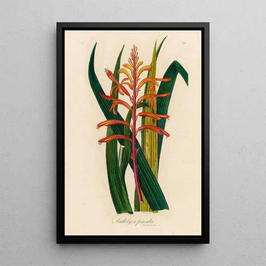 The art print "Antholyza praealta" is an ideal addition to your interior decor, whether in a living room, office, or bedroom. Its print quality and fidelity to the original colors make it a captivating art piece that draws the eye. This artwork adds a touch of exoticism and warmth to your space, while celebrating the richness of biodiversity. By choosing this canvas, you enrich your environment with an element that is both aesthetic and cultural, creating a welcoming and inspiring atmosphere.