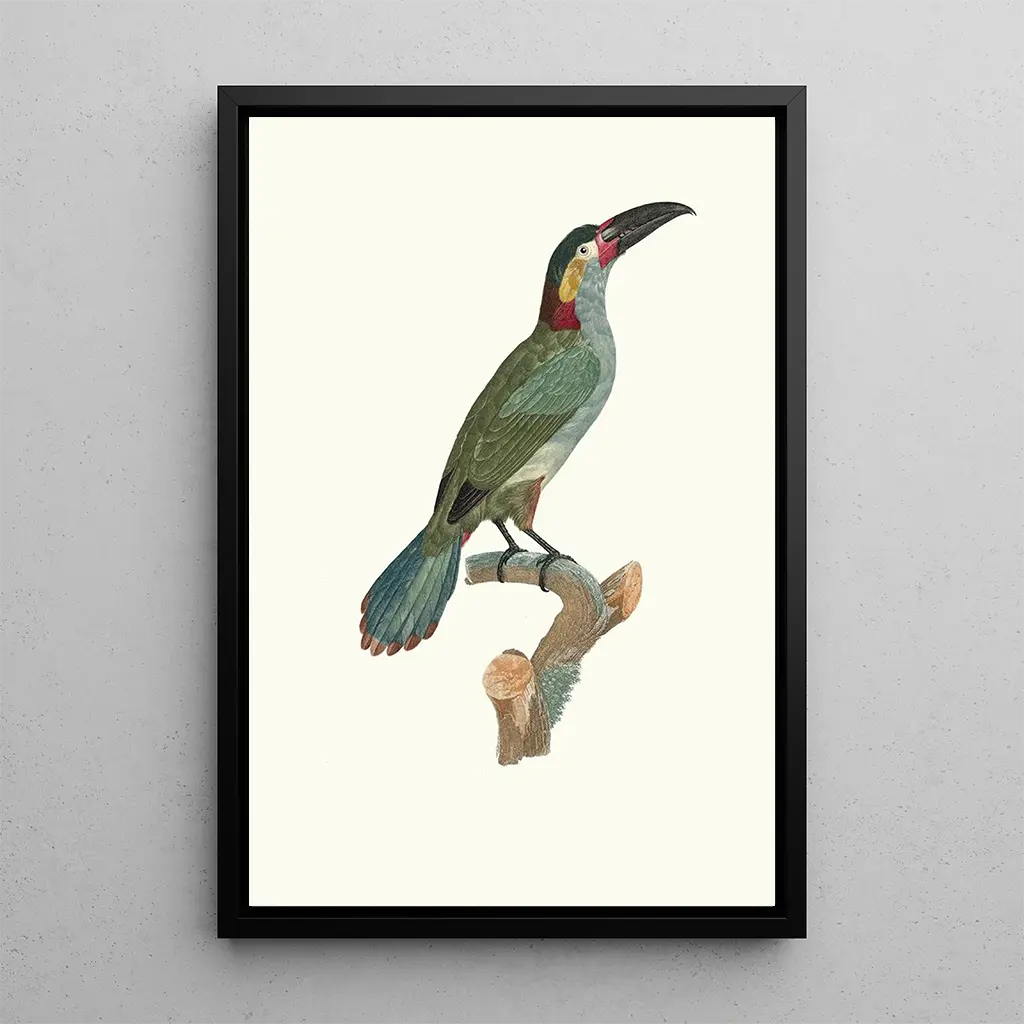Jacques Barraband, active in the early 19th century, is renowned for his contributions to naturalist illustration. Influenced by the scientific discoveries of his time, he skillfully combined art and science, paying homage to biodiversity through his works. Barraband was notably commissioned by the Muséum national d'Histoire naturelle in Paris, which enabled him to create illustrations of great accuracy. His style, both realistic and poetic, marked his era and continues to inspire art and nature enthusiasts. The L'Aracari Koulik female is a perfect example of his talent and dedication to faithful representation of species.
