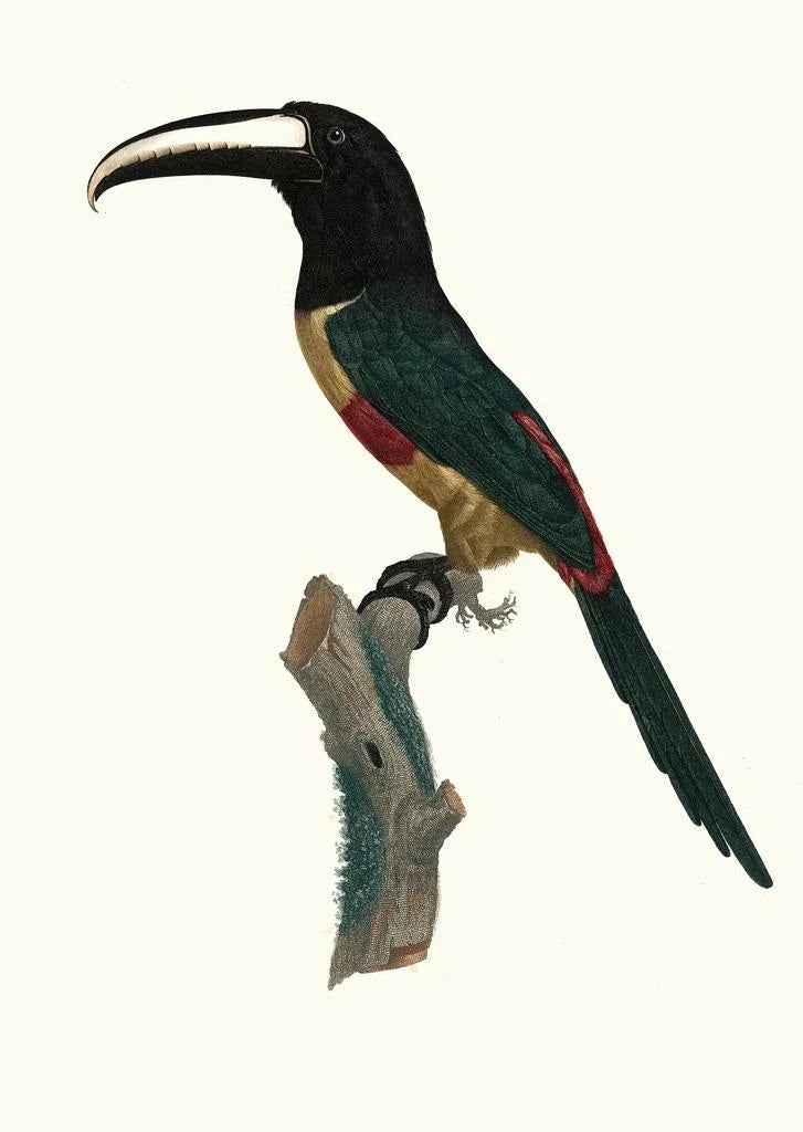 Jacques Barraband, a French painter and illustrator of the 18th century, is renowned for his precise and poetic representations of birds. Influenced by the naturalist movement, he captured the very essence of his subjects with remarkable accuracy. Barraband mainly worked for the king's menagerie, which allowed him to study exotic specimens up close. His work, of which the Red-belt Aracari is an emblematic example, demonstrates his commitment to combining art and science. Through his creations, he contributed to enriching the ornithological knowledge of his time.