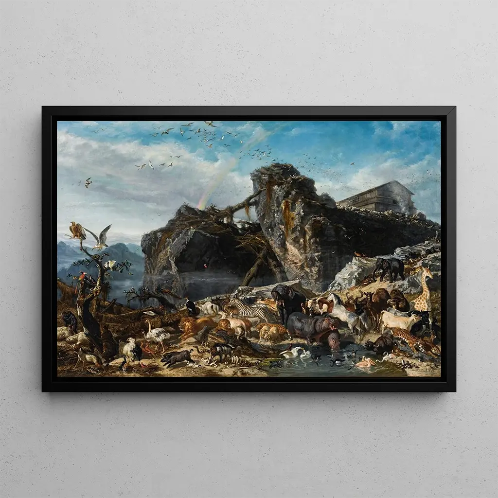 The art print of Noah's Ark is a decorative choice that harmoniously fits into various spaces, whether a living room, office, or bedroom. Its print quality and attention to detail make this canvas a valuable addition to any art collection. By choosing this piece, you bring not only an aesthetic touch but also a rich and inspiring story into your interior. This painting, with its vibrant representation of life and hope, will captivate your guests and enrich your environment, while celebrating Filippo Palizzi's art.