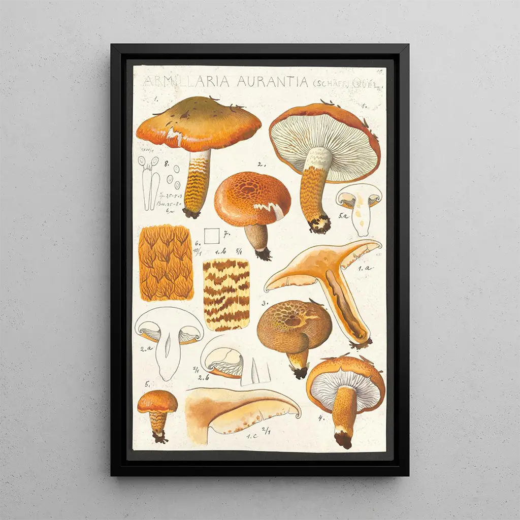 The reproduction of "Armillaire aurantie Schaeffer Quél" is a decorative piece that will enhance any space, whether it is a living room, office, or bedroom. Its printing quality guarantees remarkable fidelity to the details of the original artwork, allowing you to fully enjoy its aesthetic appeal. This art print invites reflection and contemplation, while adding a touch of elegance and mystery to your interior. By choosing this canvas, you opt for a piece that not only beautifies your decor but also sparks the interest and curiosity of your guests.