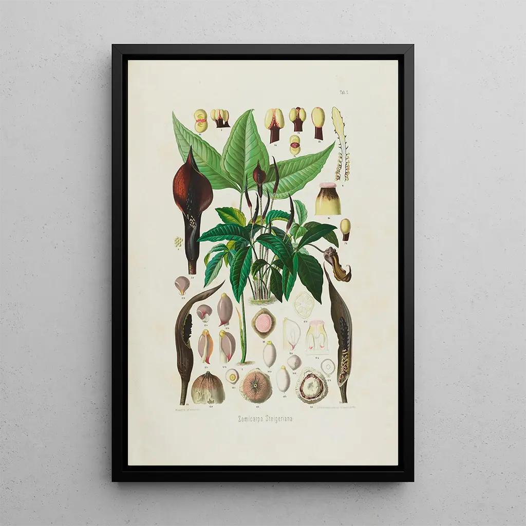 Aroideae Maximilianae Pl01: a rare beauty botanical study The art print "Aroideae Maximilianae Pl01" by Heinrich Wilhelm Schott is a botanical illustration that reveals the delicacy and complexity of plants from the araceae family. With remarkable precision, Schott captures the details of the leaves and flowers, highlighting the nuances of green and the varied textures. The composition is carefully balanced, each element arranged to create visual harmony. This artwork, both scientific and artistic, evokes a fascinating natural world, where each plant tells a story and invites exploration. Heinrich Wilhelm Schott: pioneer of botanical illustration Heinrich Wilhelm Schott, a 19th-century botanist and illustrator, is renowned for his contributions to the classification of tropical plants. Born in 1794, he dedicated his life to studying plant species, particularly araceae. His scientific approach, combined with a keen artistic sense, allowed him to produce works of great precision and striking beauty. Schott traveled to many tropical regions, collecting specimens and creating illustrations that not only enriched botanical knowledge of his time but also inspired many artists and scientists. A decorative reproduction with multiple assets The art print of the "Aroideae Maximilianae Pl01" is a decorative piece that will appeal to botany and art enthusiasts. Ideal for an office, a library, or a study room, this artwork adds a touch of elegance and sophistication. Its reproduction quality ensures fidelity to the details and colors of the original work, allowing you to fully enjoy the beauty of nature. With its unique aesthetic appeal, this piece becomes a true focal point in any space, sparking curiosity and admiration.