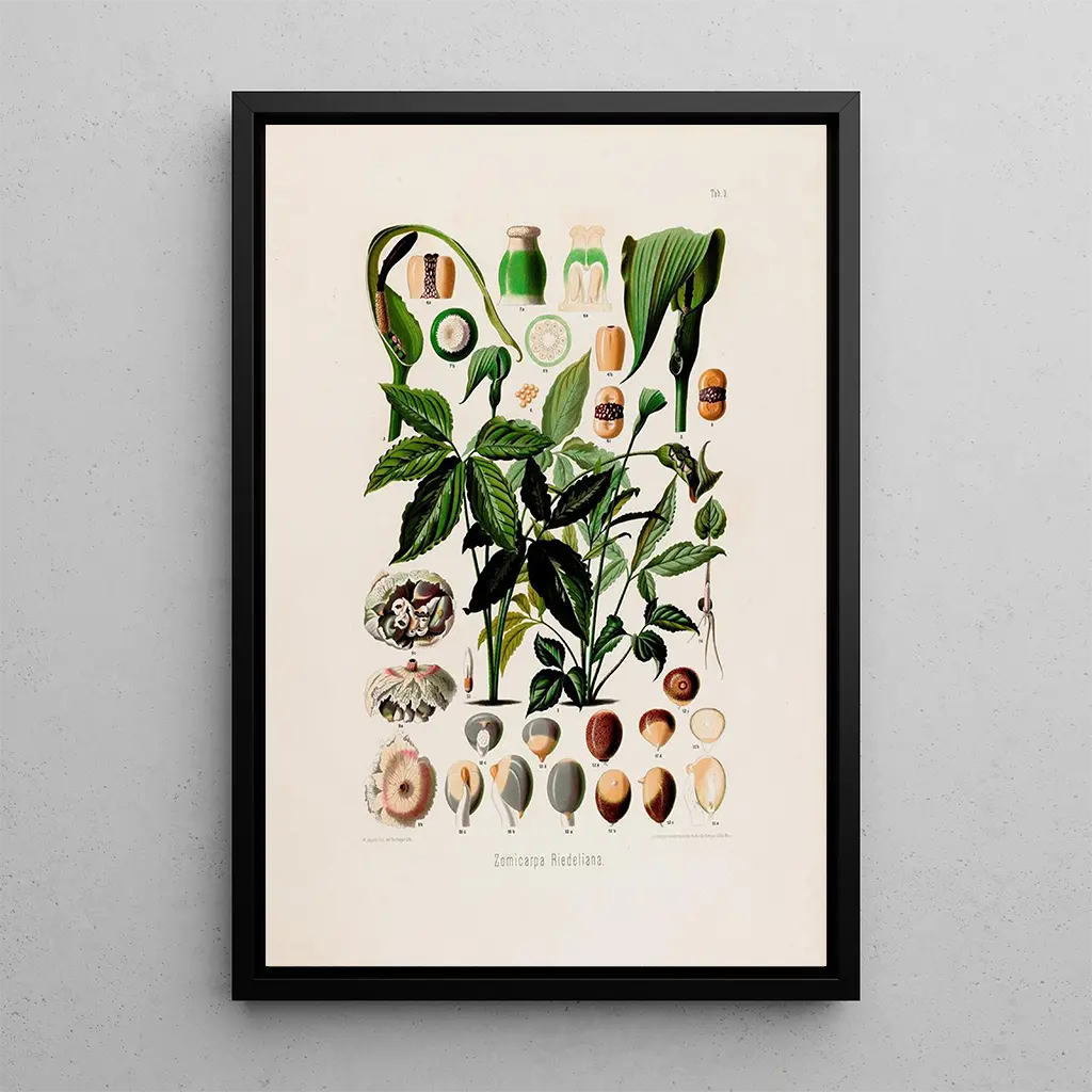 Aroideae Maximilianae Pl03 : a journey into the heart of tropical flora The art print Aroideae Maximilianae Pl03 offers a captivating immersion into the world of exotic plants. This piece stands out with its meticulous details and vibrant colors, evoking the richness and diversity of tropical flora. Shades of green, violet, and blue blend harmoniously, creating a visually striking composition. The artist, through their delicate technique, succeeds in conveying the vitality and beauty of each element, making this work a true invitation to explore nature. Each leaf seems to vibrate with life, transporting the viewer to a lush garden. Heinrich Wilhelm Schott : a master of botanical illustration Heinrich Wilhelm Schott, renowned for his botanical illustrations in the 19th century, played a key role in documenting plant species. His work, characterized by a rigorous scientific approach, helped introduce many tropical plants to the general public. Schott was influenced by the botanical explorations of his time, and his oeuvre reflects a passion for nature and a desire to share its beauty. As an illustrator, he skillfully combined scientific precision with artistic sensitivity, making him an iconic figure in the field of botanical art. A decorative acquisition with multiple benefits The art print Aroideae Maximilianae Pl03 is a perfect addition to your interior decor. Whether in a workspace, living room, or bedroom, this piece brings a touch of elegance and serenity. Its high-quality printing ensures remarkable fidelity to the details of the original work, guaranteeing a strong visual impact. By choosing this canvas, you are not only opting for a piece of art but also for a work that evokes the beauty of nature, transforming your environment into a calming and inspiring space.