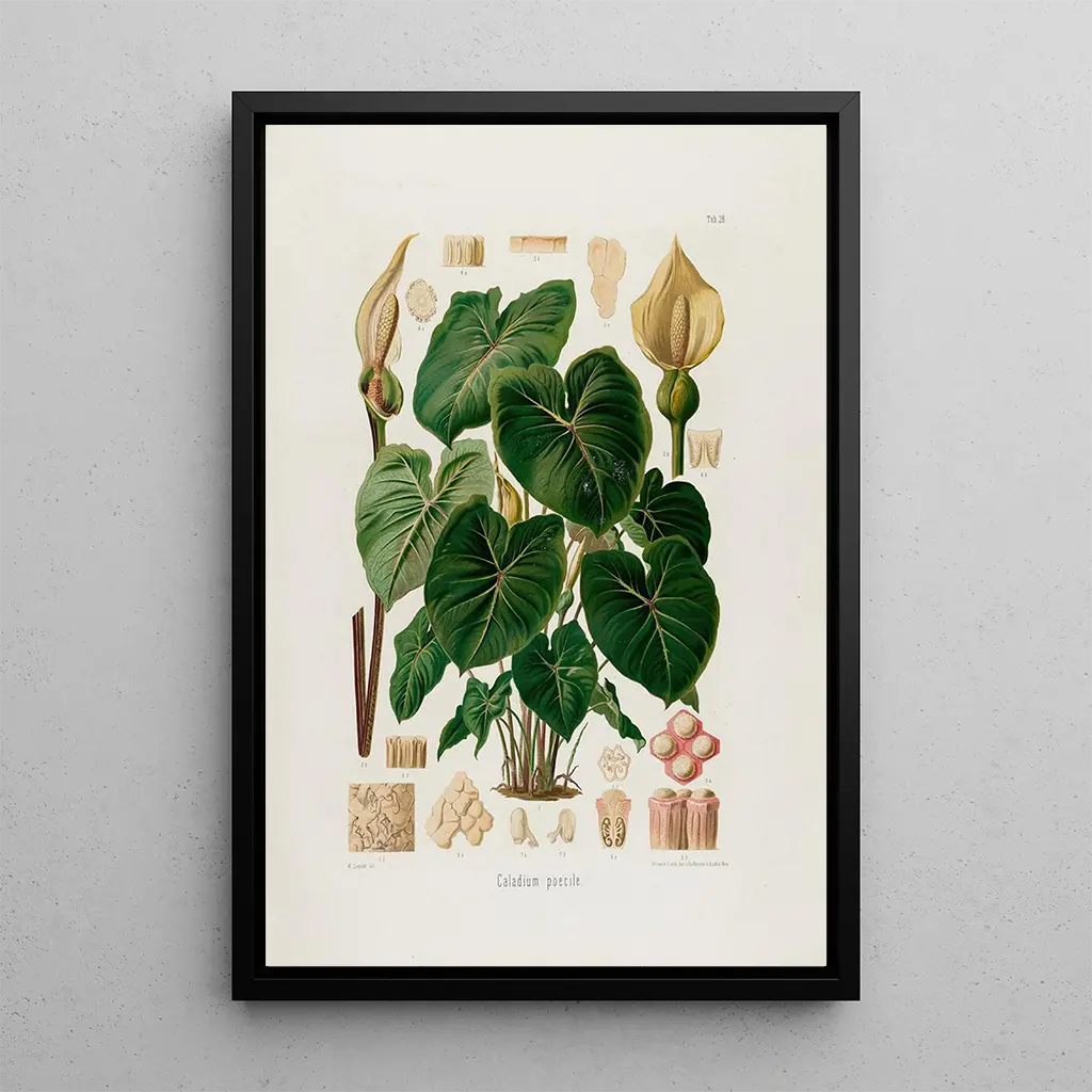 Aroideae Maximilianae Art Print Pl28 : a journey into the heart of tropical flora "**Aroideae Maximilianae Art Print Pl28**" by Heinrich Wilhelm Schott is a botanical illustration that transports the viewer to the heart of a lush jungle. This artwork, created with vibrant colors and refined details, highlights the majesty of the Aroideae. The vivid shades of green, pink, and white blend harmoniously, creating an atmosphere that is both soothing and stimulating. Schott's precise technique, which combines watercolor and drawing, captures the complexity and beauty of this plant, while offering an invitation to explore the richness of biodiversity. Heinrich Wilhelm Schott: an artist dedicated to science Heinrich Wilhelm Schott, born in 1794, is recognized as one of the great botanical illustrators of his time. His passion for botany led him to explore tropical regions, where he collected and documented numerous plant species. His work is marked by a desire to marry art and science, making his illustrations not only aesthetic but also informative. "Aroideae Maximilianae Art Print Pl28" perfectly exemplifies this approach, reflecting the importance of botanical documentation at a time when science was rapidly expanding. Schott thus left a lasting legacy in the world of scientific illustration. A decorative acquisition with multiple benefits The art print of "Aroideae Maximilianae Art Print Pl28" is a valuable addition to any art collection. Whether to embellish a living room, office, or bedroom, this canvas brings a touch of nature and serenity to your space. Its printing quality ensures remarkable fidelity to the colors and details of the original artwork, while offering undeniable visual appeal. By choosing this piece, you are not just adding a decorative item, but also inviting a part of natural beauty into your daily life, creating an inspiring and calming environment.