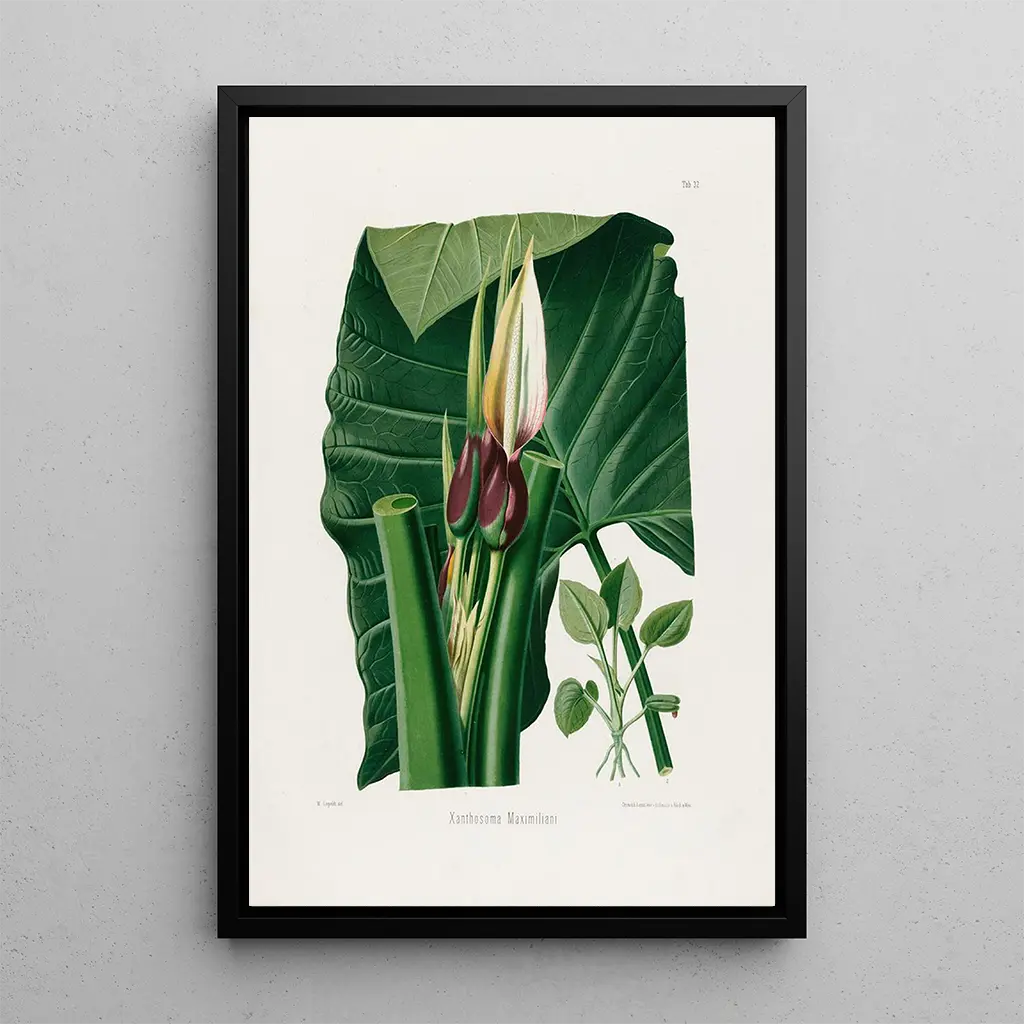 Aroideae Maximilianae Art Print : an ode to plant diversity "Aroideae Maximilianae" by Heinrich Wilhelm Schott is a work that celebrates the diversity and complexity of plants. This captivating illustration reveals a plant with rich visual details, featuring organic shapes and colors that evoke the lushness of the tropics. The meticulous details, crafted with care, allow appreciation of each vein and shade of color, creating an atmosphere that is both soothing and inspiring. The watercolor technique, mastered by Schott, gives this art print a lightness and fluidity that invite escape into an enchanting botanical world. Heinrich Wilhelm Schott : an artist dedicated to science Heinrich Wilhelm Schott, born in 1794, is recognized as one of the pioneers of botanical illustration. His work is marked by a passion for botany and a desire to pay tribute to the beauty of plants. Active in the 19th century, he was influenced by the scientific explorations of his time, which fueled his desire to document tropical flora. "Aroideae Maximilianae" not only showcases his artistic talent but also his commitment to science, making him a key figure in the field of botanical illustration. A decorative reproduction with multiple assets The art print of "Aroideae Maximilianae" is a decorative choice that will appeal to botanical and nature enthusiasts. Whether in a modern or classic interior, this canvas adds a touch of freshness and elegance. Its printing quality ensures remarkable fidelity to the colors and details of the original work, allowing full appreciation of the beauty of this plant. With its aesthetic appeal, this reproduction becomes a central decorative element, sparking curiosity and admiration in all who discover it.