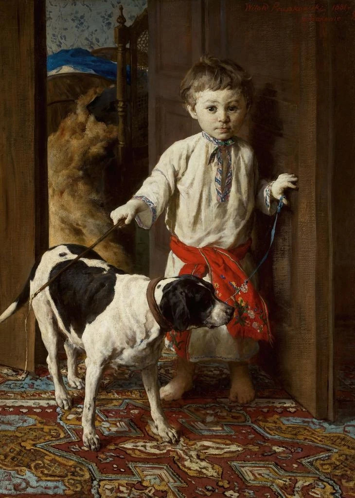 Art print of the artist's son with a dog - Witold Pruszkowski