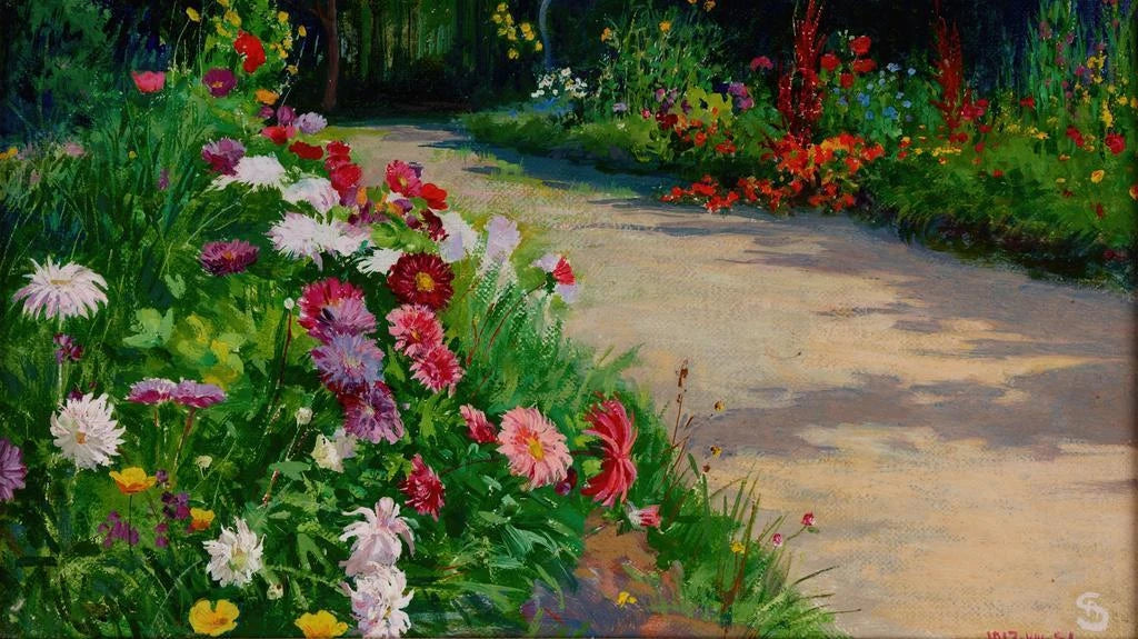 The canvas Asters by Ambroży Sabatowski is a true ode to floral beauty. The vibrant shades of purple and yellow blend harmoniously, creating an atmosphere that is both joyful and soothing. The artist's technique, which combines realism with a touch of impressionism, makes the flowers appear almost alive, as if they are dancing in the sunlight. Each petal is delicately detailed, inviting the viewer to immerse themselves in a world where nature flourishes in all its splendor.
