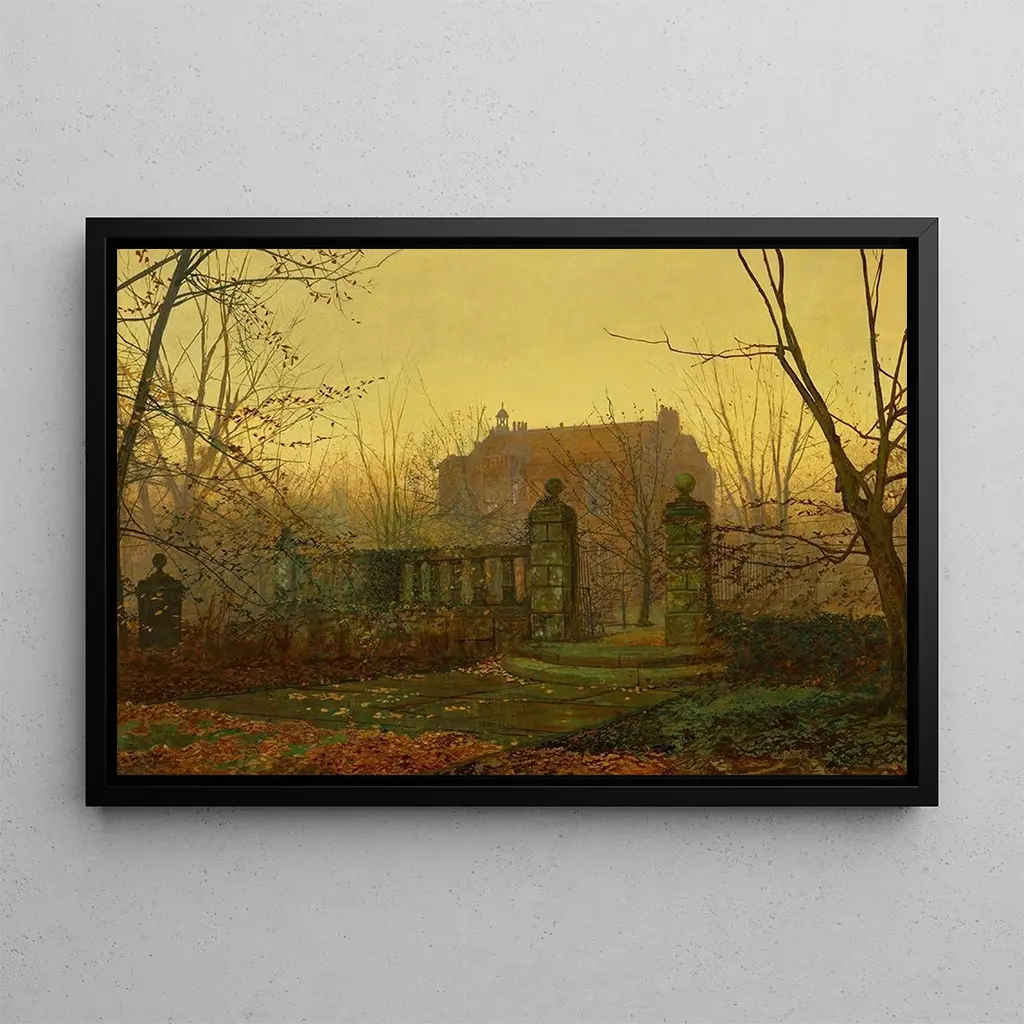 Morning Autumn: An Ode to Golden Melancholy Morning Autumn, an iconic art print by John Atkinson Grimshaw, evokes an atmosphere filled with serenity and nostalgia. The canvas, bathed in warm shades of yellow and orange, depicts an urban landscape shrouded in morning mist. The intricate details of the trees with golden leaves and historic buildings create a captivating visual harmony. The soft light filtering through the fog gives the entire scene an almost dreamlike quality, inviting the viewer to peaceful contemplation. Grimshaw, a master of chiaroscuro, succeeds in capturing the ephemeral essence of autumn, transforming a simple morning into a poetic scene. John Atkinson Grimshaw: the poet of Victorian light John Atkinson Grimshaw, active during the Victorian era, is renowned for his unique style that combines realism with romantic sensitivity. Influenced by the Pre-Raphaelites and Impressionists, he developed a painting technique that highlights light and atmospheric effects. His works, often nocturnal, reveal a fascination with urban landscapes and nature, reflecting a time of rapid industrialization. Grimshaw distinguished himself with his ability to evoke deep emotions through his representations, making him an essential artist of his time. His legacy endures, inspiring many contemporary artists. A decorative acquisition with multiple assets The art print of Morning Autumn is an ideal decorative piece to enhance your interior, whether in a living room, office, or bedroom. Its warm color palette and soothing ambiance make it a perfect choice to create a welcoming atmosphere. The quality of the reproduction guarantees remarkable fidelity to the details of the original work, allowing you to fully enjoy the beauty of this canvas. By incorporating this artwork into your decor, you bring a touch of elegance and refinement while celebrating the talent of a master painter. This piece is not only an aesthetic addition but also a source of daily inspiration.