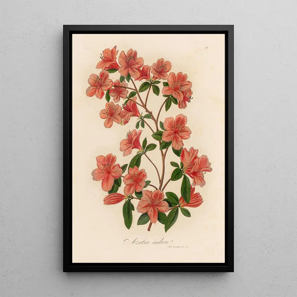 The art print of the Azalea indica is a decorative piece that will enhance any space, whether a living room, office, or bedroom. Its printing quality guarantees fidelity to the colors and details of the original, bringing a touch of nature into your interior. With its undeniable aesthetic appeal, this artwork invites contemplation and serenity. By choosing this canvas, you opt for a piece that not only beautifies your decor but also evokes the timeless beauty of flora, creating a calming and inspiring atmosphere.