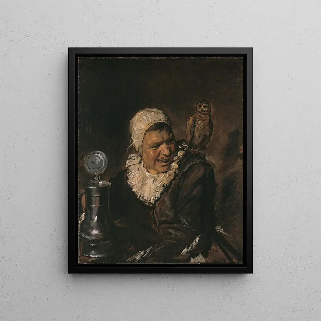 Frans Hals's style is distinguished by its liveliness and bold approach to portraiture. Unlike other artists of his time, Hals favors a spontaneous and dynamic rendering, capturing not only the physical features of his subjects but also their personality. In "Malle Babbe," the artist uses expressive brushstrokes and vibrant colors to bring this iconic figure to life. Light plays a crucial role in the composition, illuminating the face of the protagonist and creating a striking contrast with the dark background. This chiaroscuro technique gives the artwork emotional depth, while Malle Babbe's expression, both joyful and melancholic, hints at the complexities of the human soul. Every detail, from the extravagant hat to carefully chosen accessories, contributes to the visual storytelling, transforming the painting into a lively scene where the story unfolds before our eyes.