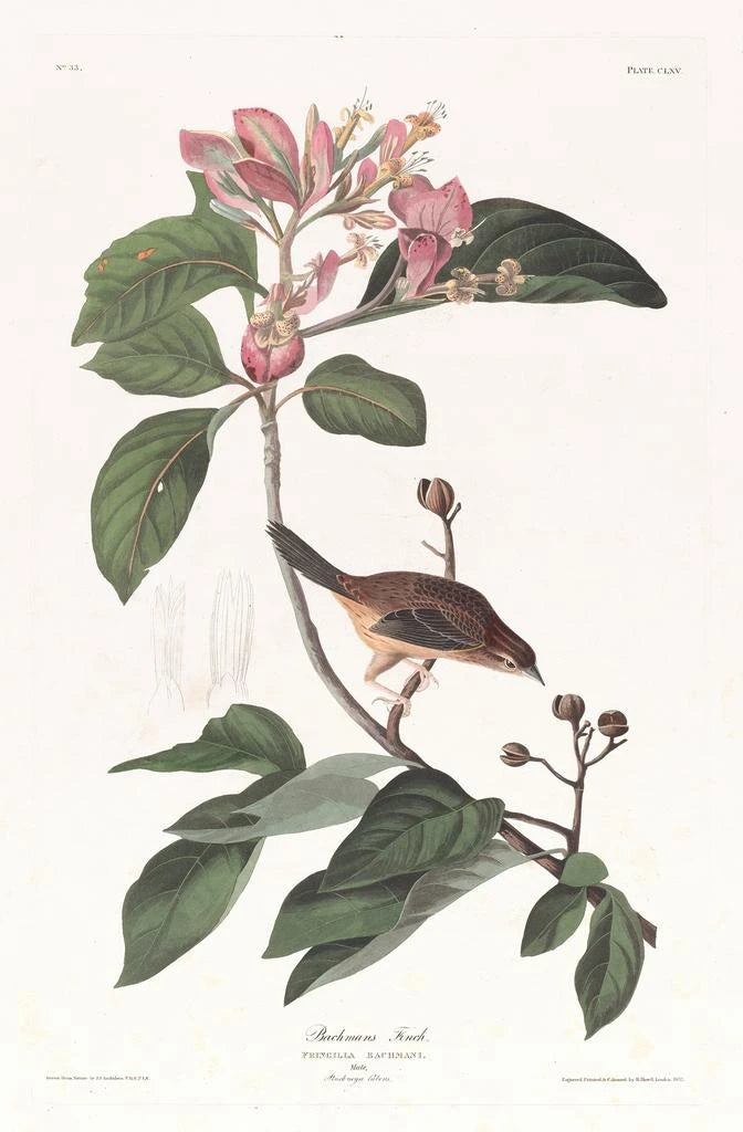John James Audubon, born in 1785, is recognized as one of the greatest naturalists and artists of his time. His work is part of the Romantic movement, where nature is celebrated in all its splendor. Influenced by his travels across America, Audubon captured avian diversity with remarkable precision. His book "Birds of America" revolutionized ornithology and set high standards for naturalist art. By depicting Bachman's Sparrow, he pays tribute to the biodiversity of his era while raising public awareness about wildlife conservation.