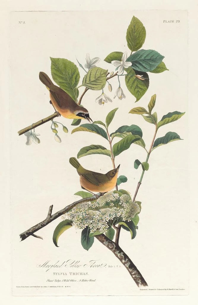John James Audubon, born in 1785 in Haiti, is recognized as one of the greatest ornithologists and artists of his time. His passion for birds and nature led him to travel across North America, where he observed and drew numerous species. His iconic work, "The Birds of America," revolutionized the way birds were depicted in art. Audubon skillfully combined scientific accuracy with artistic sensitivity, making him an essential figure of the 19th-century naturalist movement. The Maryland Warbler, among his many works, testifies to his commitment to capturing the beauty and diversity of wildlife.