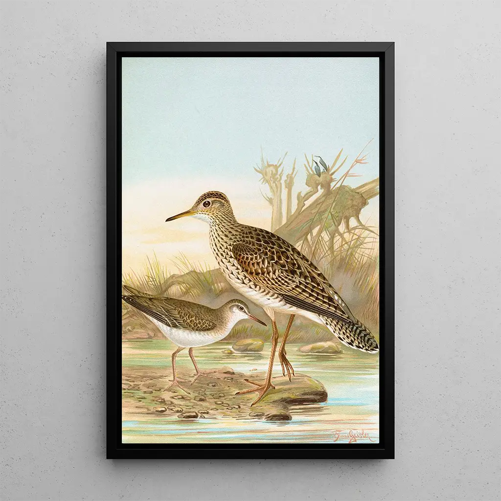 The art print of Bartramia longicauda Tringoides macularius is an ideal decorative choice to enhance a living room, office, or bedroom. Its print quality and fidelity to the original colors make it a captivating piece of art that draws the eye. By incorporating this artwork into your interior, you bring a touch of nature and serenity, while enriching your decor. Its aesthetic appeal and message about wildlife preservation make it a both beautiful and meaningful element.