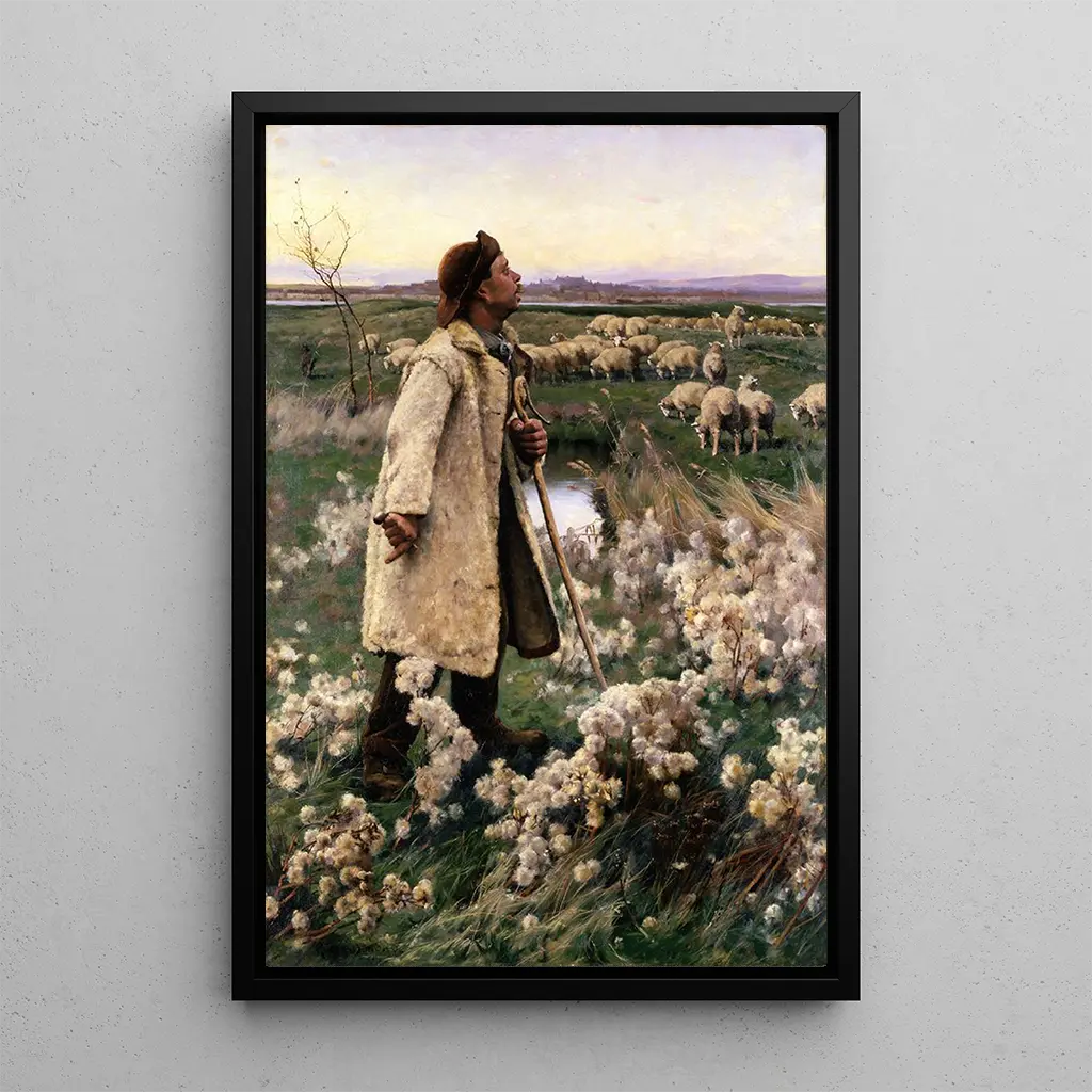Choosing an art print of the "Berger" painting by Ruger Donoho means selecting a decorative piece that will bring a touch of serenity to your interior. Whether in a living room, office, or bedroom, this canvas integrates harmoniously into various decorating styles, from classic to contemporary. Its printing quality guarantees fidelity to the colors and details of the original work, while offering undeniable aesthetic appeal. By adding this art print to your collection, you create a space where nature and art meet, inviting relaxation and contemplation.