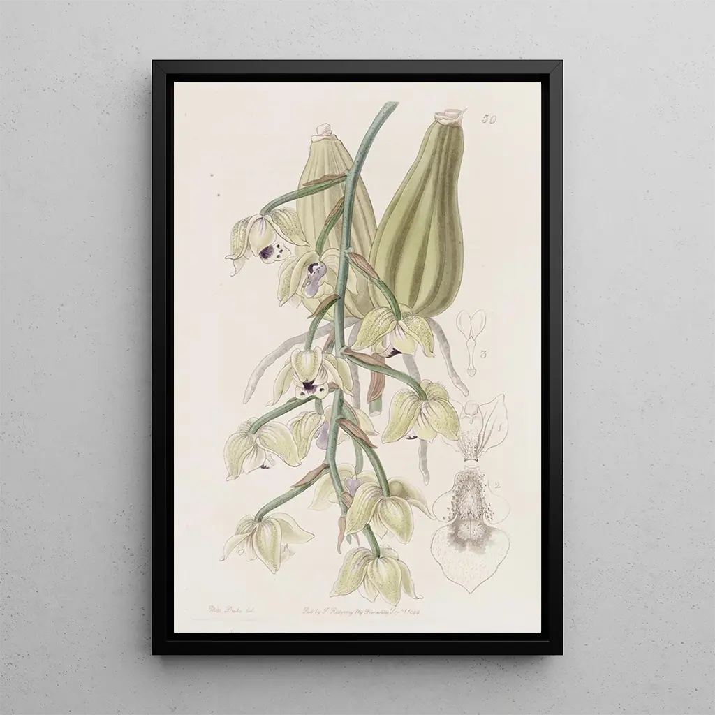Lacaena bicolore, an art print by Sydenham Edwards, is a painting that celebrates the beauty of nature through a palette of dazzling colors. The shades of green and yellow blend harmoniously, creating a lively and joyful atmosphere. The watercolor technique, mastered by the artist, captures the delicacy of details, from petals to leaves, while offering a fluidity that evokes movement. This art print invites serene contemplation, where each glance reveals a new facet of this fascinating plant, as if it were coming to life before our eyes.