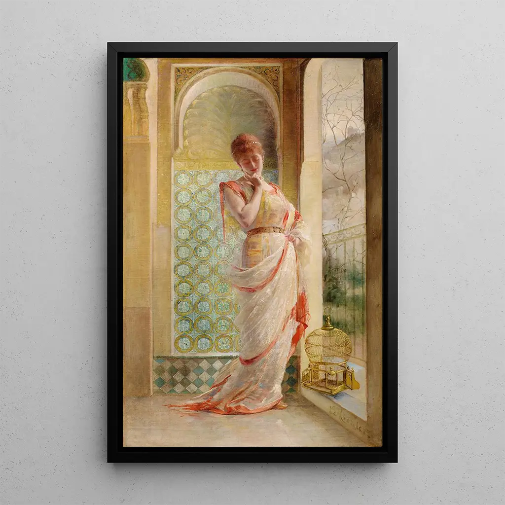 In this art print of the work "The bird has taken flight," Édouard Frédéric Wilhelm Richter captures a fleeting moment where nature and emotion meet. The canvas, bathed in soft and luminous colors, evokes a peaceful and contemplative atmosphere. The meticulous details of the bird's plumage contrast with the blurred background, creating a sense of movement and lightness. Richter's technique, blending realism and impressionism, allows the viewer to feel the ephemeral beauty of the scene, as if the bird could take off at any moment.