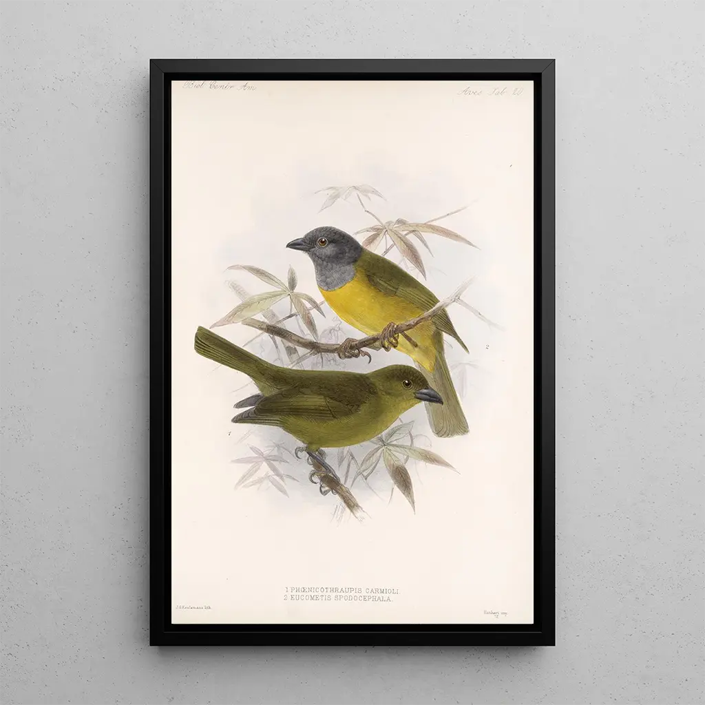"**Aves Pl 21**" by Frederick DuCane Godman is an art print that evokes the splendor of birds in their natural habitat. This artwork stands out with its vibrant palette, where colors blend with captivating fluidity, paying tribute to avian diversity. The meticulous details of the plumage and the elegant poses of the birds create an atmosphere of lightness and grace. Godman, through this art print, succeeds in capturing the very essence of nature, inviting the viewer to immerse themselves in a world where each species is carefully and passionately showcased.