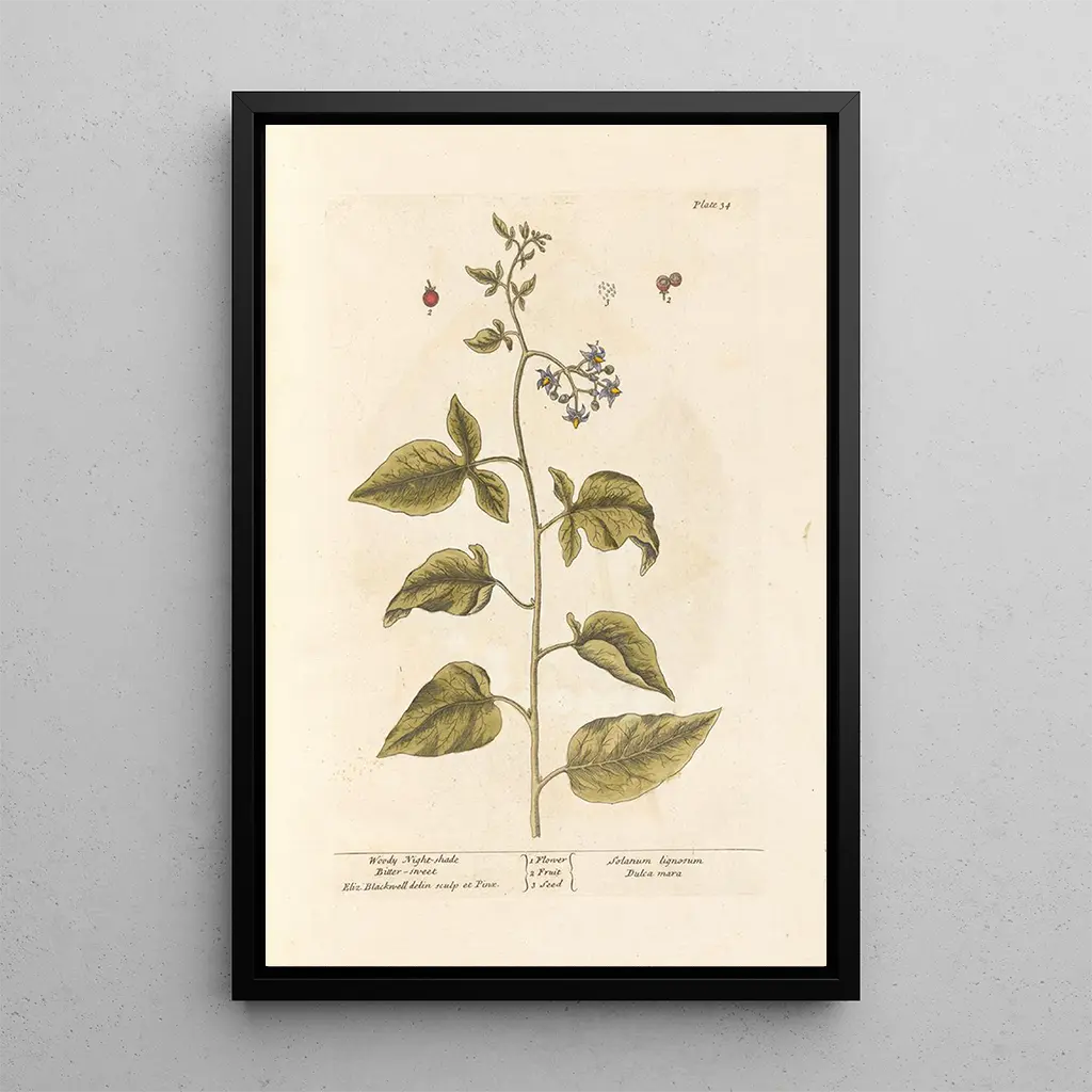 Douce-amère: an exploration of human emotions The art print of Douce-amère by Elizabeth Blackwell evokes a palette of delicate colors, oscillating between pastel shades and darker nuances. This canvas, both gentle and poignant, captures an atmosphere of melancholy and reflection. The organic shapes and meticulous details demonstrate exceptional craftsmanship, where each brushstroke seems to tell a story. The artwork invites the viewer to immerse themselves in a universe where feelings intertwine, offering a rich and emotional visual experience. Elizabeth Blackwell: a pioneer of botanical art Elizabeth Blackwell, active in the 18th century, is renowned for her unique approach to botanical art. Influenced by the naturalist currents of her time, she mastered combining scientific precision with refined aesthetics in her works. Her career was marked by the publication of several books on plants, which contributed to the advancement of botanical knowledge. As a female artist in a male-dominated field, Blackwell paved the way for many other artists, leaving a lasting legacy in the worlds of art and science. A decorative acquisition with multiple virtues The art print of Douce-amère is a decorative piece that harmoniously fits into various spaces, whether a living room, office, or bedroom. Its print quality and fidelity to the original details make it an ideal choice for art enthusiasts. The aesthetic appeal of this canvas lies in its ability to evoke emotions and enrich the ambiance of a room. By choosing this artwork, you give your interior a touch of elegance and depth, while celebrating the talent of a remarkable artist.