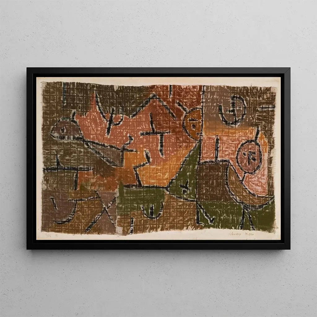 Paul Klee, a Swiss artist of the early 20th century, is considered a pioneer of modern art. His unique style, which blends abstraction and figuration, was influenced by Surrealism and Cubism. Klee explored various themes, ranging from childhood to spirituality, including music, which is reflected in his works. "Black Mass" is a perfect example of his innovative approach, where he uses color and form to express complex ideas. His artistic legacy continues to influence many contemporary artists, making him an essential figure in art history.