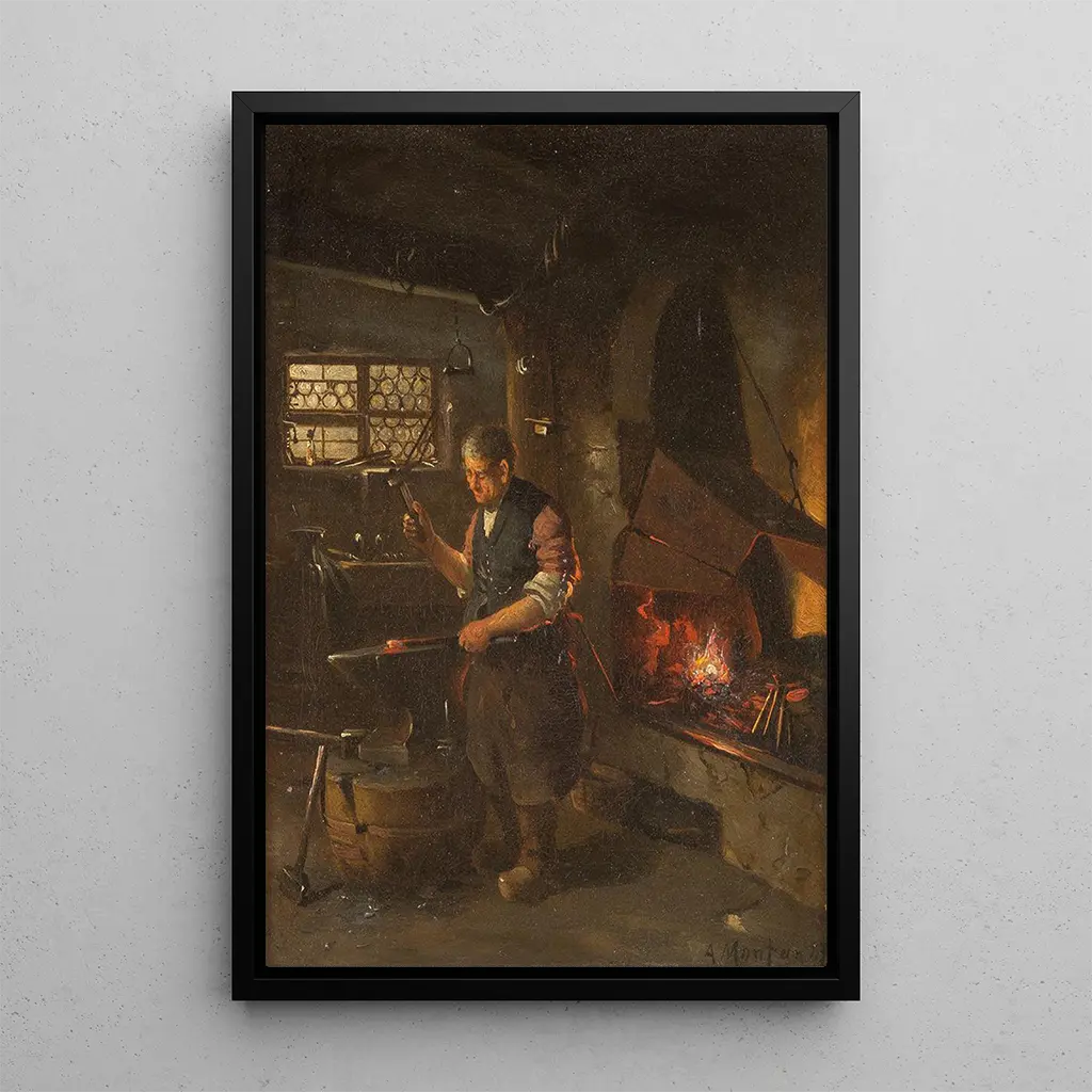La reproduction de "Chez le forgeron" est une pièce décorative qui saura enrichir votre intérieur, que ce soit dans un salon, un bureau ou une chambre. Avec sa qualité d'impression fidèle et ses couleurs chaleureuses, ce tableau apporte une touche d'authenticité et de charme rustique à votre décoration. Son attrait esthétique réside dans la capacité à évoquer des émotions et à raconter une histoire, transformant ainsi n'importe quel espace en un lieu de contemplation. Opter pour cette toile, c'est choisir d'intégrer une œuvre qui célèbre le travail et la tradition, tout en s'harmonisant parfaitement avec divers styles d'intérieur.