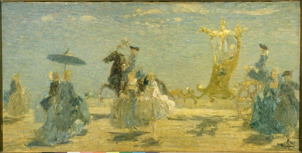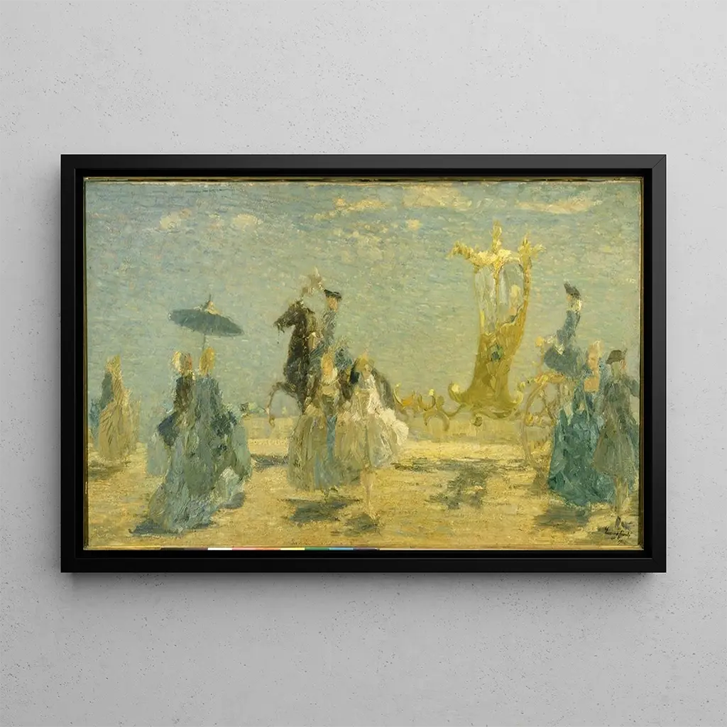 Symphony in Blue: A Harmony of Marine Hues The "Symphony in Blue" by Emma Ciardi is a captivating artwork that evokes the tranquility and depth of the oceans. The various shades of blue, ranging from turquoise to deep blue, create a soothing, almost meditative atmosphere. Ciardi, with her mastery of light and shadow, manages to bring this canvas to life, where the waves seem to move under the viewer's gaze. Each brushstroke is a note in this visual symphony, inviting serene contemplation and an escape to distant horizons. Emma Ciardi: A Pioneer of Marine Painting Emma Ciardi, an Italian artist active in the late 19th and early 20th centuries, is renowned for her marine landscapes and depictions of the sea. Influenced by the Impressionist movement, she captured the beauty of the coasts and waves with a unique sensitivity. Her career, though less well-known than that of her male contemporaries, marked her era with her ability to translate emotion and light. "Symphony in Blue" testifies to her talent and her commitment to representing nature, making her an important figure in art history. A Decorative Acquisition with Multiple Assets The art print of "Symphony in Blue" is a perfect choice to bring a touch of serenity to your interior decor. Whether in an office, a living room, or a bedroom, this canvas offers exceptional print quality that preserves the original nuances of the work. Its aesthetic appeal and ability to evoke emotions make it an ideal decorative element to create a relaxing atmosphere. By incorporating this piece into your space, you add not only a work of art but also an invitation to daydream and escape to peaceful shores.