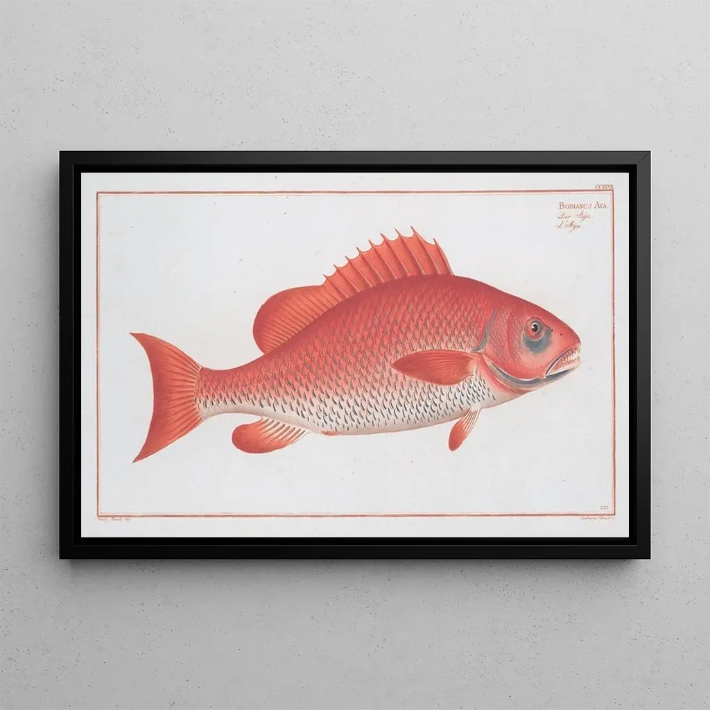 The art print of Bodianus Aya is a decorative piece that will add an exotic touch to your interior. Whether in a living room, office, or bedroom, this canvas will captivate attention and evoke wonder. Its printing quality guarantees fidelity to the colors and details of the original work, making this art print an ideal choice for nature and art enthusiasts. By incorporating this painting into your decor, you create a space that celebrates the beauty of the oceans and the artistic heritage of Marcus Elieser Bloch.