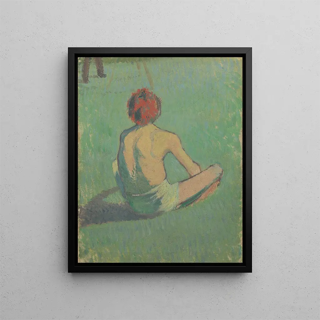 In the vibrant world of post-impressionist art, the piece "Garçon assis dans l'herbe" by Émile Bernard stands out for its brightness and apparent simplicity. This artwork, which evokes gentle intimacy, transports us to a world where nature and humanity coexist harmoniously. The young boy, frozen in a moment of contemplation, seems to invite the viewer to share his state of mind, to feel the warmth of the sun and the coolness of the grass beneath his feet. The art print of this piece allows appreciation of the delicacy and emotional depth emanating from each brushstroke, thus revealing the artist's soul.