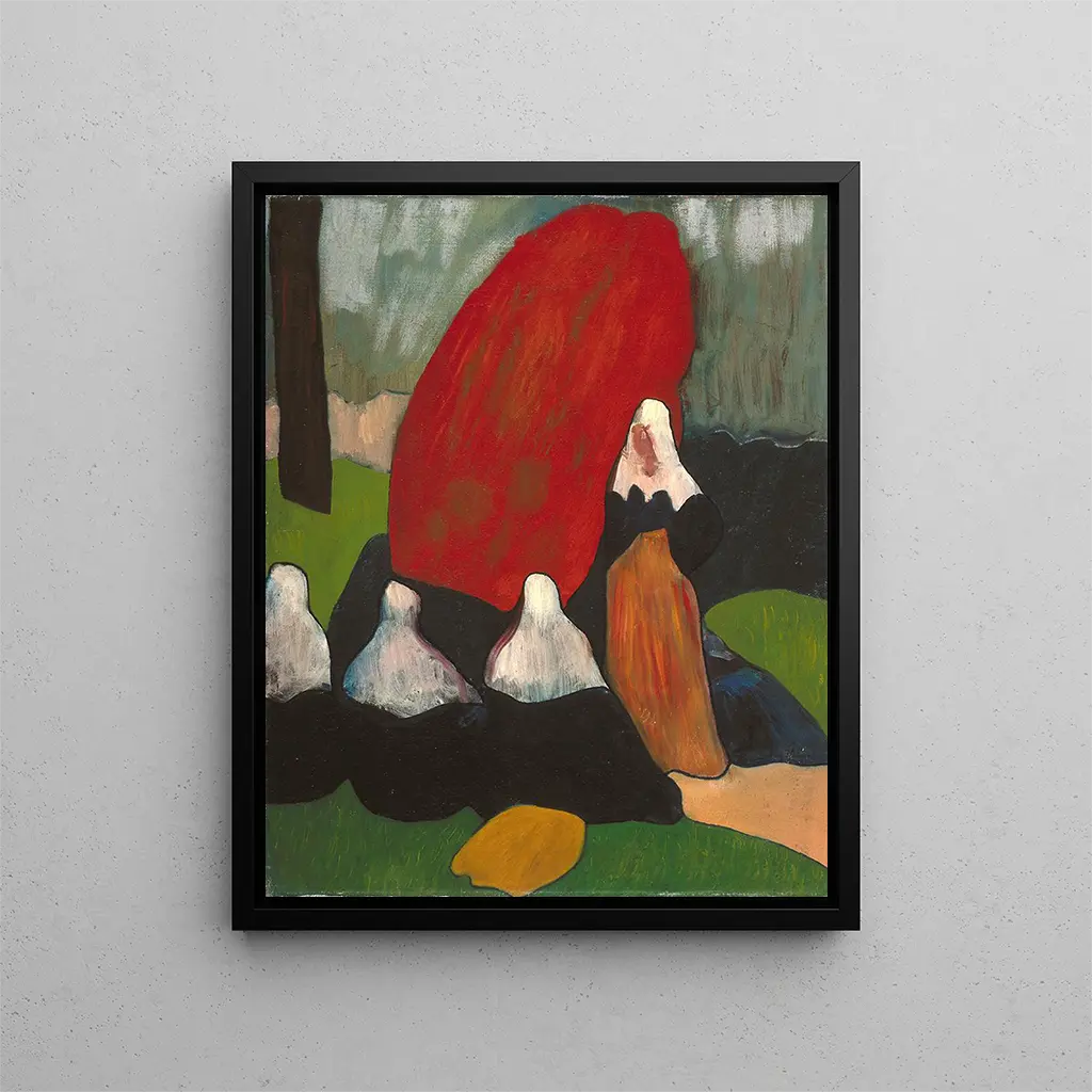 Breton Women with Seaweed - Émile Bernard – Captivating Introduction In the vibrant universe of art, some works manage to capture the essence of a region, a culture, or even a period. "Breton Women with Seaweed" by Émile Bernard is one of those creations that transports the viewer to the heart of Brittany, a land of authenticity and maritime traditions. This painting, both lively and intimate, evokes the daily life of Breton women, immersed in their natural environment where the sea and land meet. Through this piece, Bernard invites us to discover a world where beauty blends with simplicity, where every detail tells a story. Style and uniqueness of the work Émile Bernard's style is deeply rooted in the Post-Impressionist movement, but it stands out through a unique approach that combines vivid colors and stylized forms. In "Breton Women with Seaweed," the artist plays with light and shadow, creating an almost dreamlike atmosphere. The women, draped in their traditional costumes, seem to dance with the seaweed, while the shades of blue and green recall the reflections of the sea. The composition, both dynamic and harmonious, demonstrates technical mastery that transcends mere realism. Every brushstroke is an invitation to admire the beauty of natural elements and the quiet strength of the depicted characters. The artist and his influence Émile Bernard, an emblematic figure of the late 19th century, left his mark on his era with his innovative vision of art. Influenced by masters like Paul Gauguin, he developed a style that combines tradition and modernity. Bernard was always fascinated by Brittany, a region he explored and celebrated through his works. His artistic approach is characterized by a constant search for color and light, as well as a desire to depict the daily life of simple people with emotional depth. Through "Breton Women with Seaweed," he offers us a glimpse of his attachment to this land, while also demonstrating his desire to capture the Breton soul in all its splendor. An exceptional wall decoration signed Artem Legrand In the context of interior decoration, "Breton Women with Seaweed"