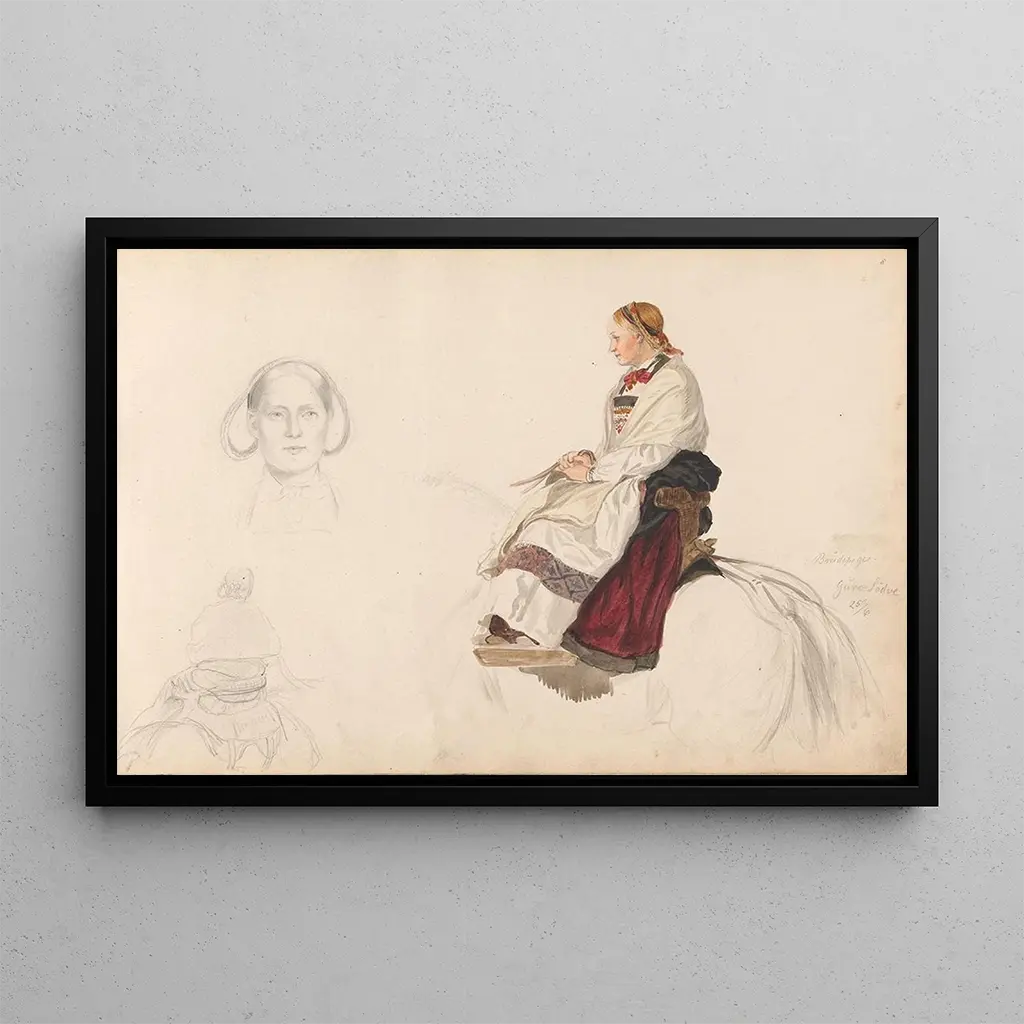 Source: Demoiselle d'honneur Guro Ldve Vossevangen: a portrait of grace and delicacy The art print of the painting "Demoiselle d'honneur Guro Ldve Vossevangen" by Adolph Tidemand reveals timeless beauty. This portrait, rich in detail, features a young woman dressed in a traditional gown, adorned with delicate patterns. The pastel colors and subtle nuances of the skin give the piece a soft, dreamy atmosphere. Tidemand, a master of genre painting, uses meticulous technique to capture the expressions and emotions of his model, creating an intimate connection between the viewer and the subject. This art print is a true celebration of femininity and Scandinavian culture. Adolph Tidemand: an ambassador of Norwegian romanticism Adolph Tidemand, a Norwegian painter of the 19th century, is known for his works that celebrate everyday life and the traditions of his country. Influenced by romanticism, he skillfully combined realism and idealization in his portraits and genre scenes. Tidemand was also a passionate advocate for Norwegian culture, seeking to immortalize the costumes and customs of his era. His work had a significant impact on Scandinavian art, making him an iconic figure of Norwegian painting. Through his artworks, Tidemand conveyed the soul of his country and the importance of its traditions. A decorative acquisition with multiple benefits The art print of the painting "Demoiselle d'honneur Guro Ldve Vossevangen" is an ideal choice to enhance your interior, whether in a living room, office, or bedroom. Its printing quality ensures fidelity to the details and colors of the original work, adding a touch of elegance to your decor. The aesthetic appeal of this canvas lies in its ability to evoke emotions and enrich the atmosphere of your space. By incorporating this art print, you offer your interior a piece of art that combines tradition and beauty, while creating an inspiring and refined environment.