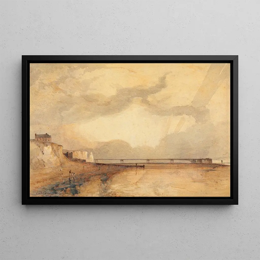 The art print of Marine, Brighton Pier transports us to the seaside, where the horizon blends seamlessly with the sky. The shades of blue and green intertwine to create a calming atmosphere, while the touches of light evoke the reflections of the sun on the water. Copley Fielding, a master of landscape painting, uses an oil painting technique that brings the waves and the pier to life, making every detail almost tangible. The piece invites contemplation, allowing the viewer to escape into this serene tableau.