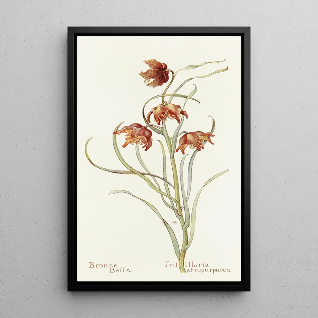 Bronze Bellflowers: a visual melody of nature. The art print "Bronze Bellflowers" by Margaret Armstrong evokes a delicate scene where flowers seem to vibrate to the rhythm of a gentle breeze. The golden and green hues intertwine to create a warm and inviting atmosphere. Armstrong's technique, combining finesse and precision, highlights every detail of the bellflowers, giving them an almost tangible presence. This artwork invites attentive contemplation, where each glance reveals a new nuance of beauty. Margaret Armstrong: an artist at the heart of floral art. Margaret Armstrong, active at the end of the 19th century, is a prominent figure in botanical illustration. Her work, influenced by the Arts and Crafts movement, is distinguished by a particular attention to detail and a celebration of nature. "Bronze Bellflowers" is part of a period when floral art experienced a renaissance, and Armstrong, through her talent, contributes to this rediscovery. Her legacy endures, inspiring many generations of artists and art enthusiasts. A decorative acquisition with multiple assets. The art print of "Bronze Bellflowers" is a perfect choice to add a touch of elegance to your interior decor. Whether in a living room, office, or bedroom, this canvas blends harmoniously with various styles of decoration. Its printing quality ensures remarkable fidelity to the original works, while offering undeniable aesthetic appeal. By choosing this art print, you opt for a piece that will enrich your living space while celebrating Margaret Armstrong's talent.
