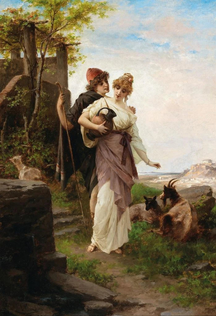 Art print of a bucolic scene near the fountain - Luigi Crosio