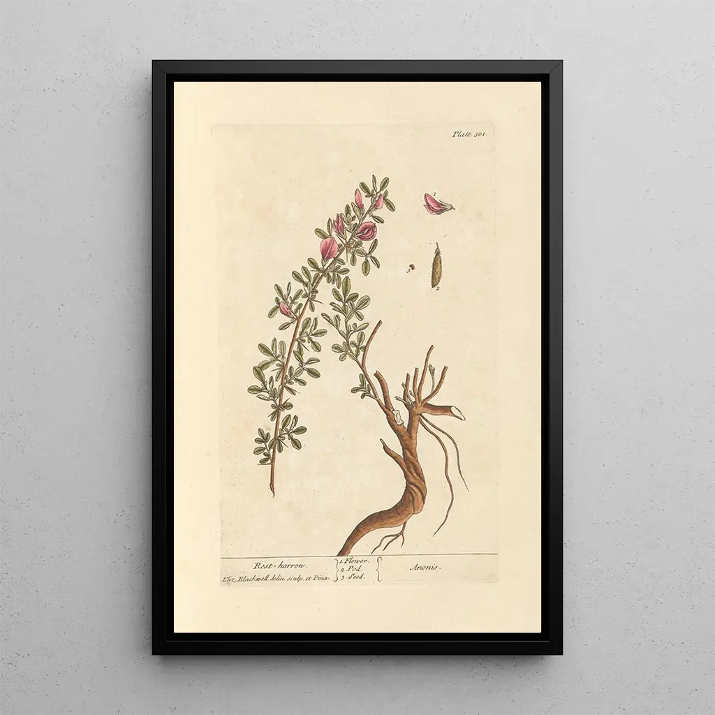 Bugrane: a tribute to the delicacy of nature The art print of Bugrane by Elizabeth Blackwell is a true celebration of floral beauty. This piece, created with botanical precision, highlights the delicate nuances of the petals and leaves, creating a soothing atmosphere. The pastel colors, ranging from tender green to subtle pink, evoke the softness of spring. The watercolor technique allows light to play on the surfaces, bringing each detail to life. The artist succeeds in capturing the very essence of the plant, inviting the viewer to a serene contemplation and an appreciation of nature. Elizabeth Blackwell: pioneer of botanical illustration Elizabeth Blackwell, active in the 18th century, is a prominent figure in botanical illustration. Born in 1707, she made a name for herself in a male-dominated field by combining a passion for botany with artistic talent. Her work is the result of a time when the study of plants was flourishing, and she contributed to documenting numerous species. Influenced by the scientific discoveries of her era, Blackwell managed to marry scientific rigor with artistic sensitivity, making her a pioneer whose legacy endures to this day. A decorative acquisition with multiple assets The art print of Bugrane is an ideal choice to enhance your interior, whether in a living room, office, or bedroom. Its print quality and fidelity to the original colors make it an exceptional decorative piece. The aesthetic appeal of this canvas adds a touch of freshness and serenity to your space, while sparking conversations about art and nature. Choosing this artwork is opting for a refined and timeless decoration that will charm all lovers of botany and art.