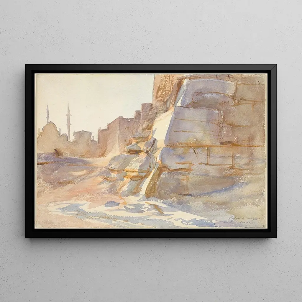 The painting Cairo by John Singer Sargent immerses us in an enchanting atmosphere, where light plays with shadows to reveal the beauty of urban landscapes. The warm, golden hues evoke the dazzling sun of Egypt, while the meticulous details of buildings and characters add a lively dimension to the scene. Sargent, a master of oil painting, uses fluid brushstrokes to capture the essence of a fleeting moment, inviting the viewer to feel the city's energy. This artwork, both realistic and poetic, is a true window into a fascinating world.
