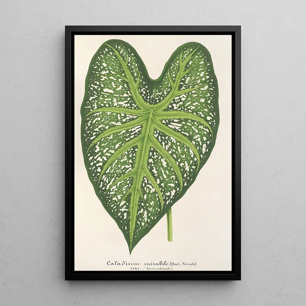 Caladium mirabile : a dance of exotic colors The art print Caladium mirabile by Charles Antoine Lemaire is a true ode to nature. The leaves with vibrant hues, oscillating between bright green and delicate pink, seem to vibrate under the light. The artist's technique, blending watercolor and drawing, brings this tropical plant to life, making it almost tangible. The atmosphere emanating from this piece is both soothing and enchanting, inviting the viewer to immerse themselves in a world of natural beauty. Every detail, every nuance, reflects a deep love for botany and an exceptional mastery of colors. Charles Antoine Lemaire: a pioneer of botanical illustration Charles Antoine Lemaire, botanist and illustrator of the 19th century, left his mark with precise and poetic representations of flora. Influenced by the travels and botanical discoveries of his time, he captured the essence of exotic plants with remarkable accuracy. His work, often associated with the Romantic movement, contributed to a better understanding and appreciation of plant species. Lemaire was also a passionate advocate for plant conservation, earning him an important place in the history of botanical art. His works, such as Caladium mirabile, are not only illustrations but also testimonies to the richness of biodiversity. A decorative piece with multiple assets Choosing an art print of Caladium mirabile means selecting a decorative piece that will add a touch of exoticism to your interior. Whether in a living room, office, or bedroom, this artwork will harmoniously fit into various decorating styles. Its printing quality guarantees fidelity to the colors and details of the original piece, while offering undeniable aesthetic appeal. By adding this canvas to your collection, you are not just beautifying your space, but also inviting a piece of nature indoors, creating a serene and inspiring atmosphere.