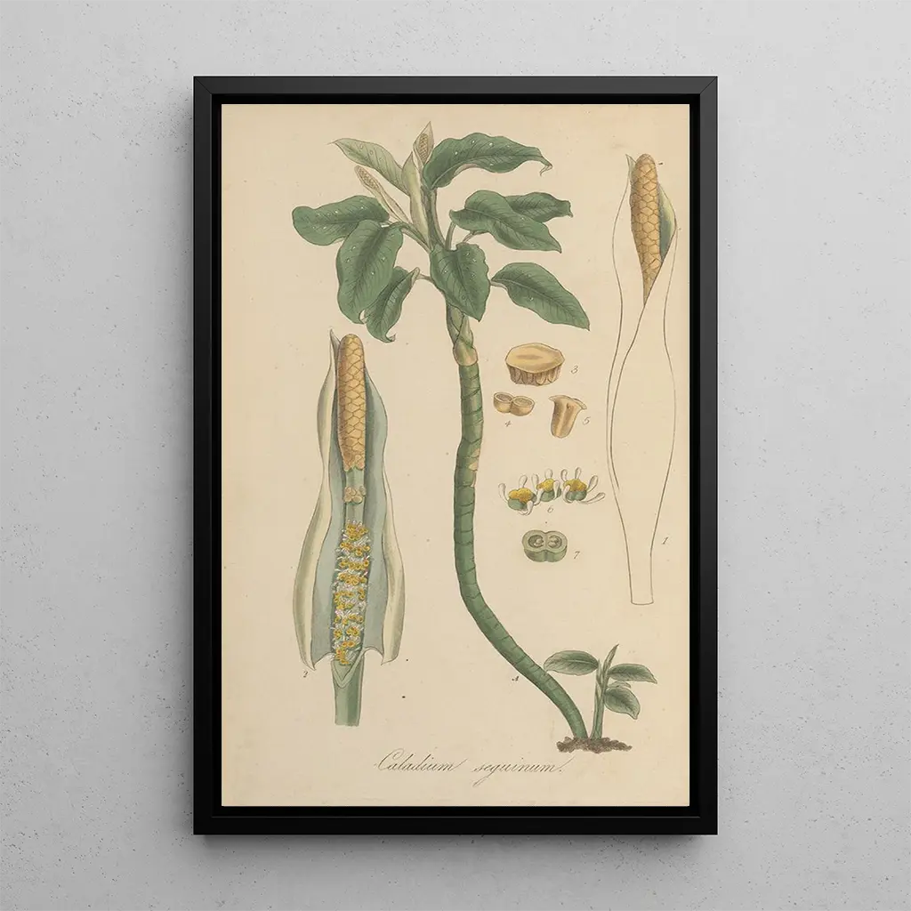 Caladium seguinum: an ode to biodiversity The art print of Caladium seguinum reveals a striking beauty, where shades of green and white blend harmoniously. The leaves, broad and decorative, seem to almost vibrate under the light, creating a lively spectacle that captures attention. The watercolor technique, mastered by William Jackson Hooker, allows for the delicate texture of the leaves to be rendered while capturing the richness of the colors. This piece invites contemplation and wonder at the diversity of tropical flora. William Jackson Hooker: an artist dedicated to science William Jackson Hooker is recognized as one of the greatest botanical illustrators of his time. Active in the 19th century, he managed to marry art and science, producing works that are both aesthetic and informative. His work was influenced by the botanical explorations of his era, and he contributed to the knowledge of many plant species. With Caladium seguinum, Hooker demonstrates his talent for capturing the beauty of plants while respecting their scientific structure, making him an essential figure in the field of botanical illustration. A decorative acquisition with multiple assets The art print of Caladium seguinum is a valuable addition to any interior decor. Whether in a living room, office, or bedroom, this poster brings a touch of elegance and vitality. Its printing quality ensures perfect fidelity to the colors and details of the original artwork, while its aesthetic appeal makes it an ideal choice for those wishing to enrich their living space. By choosing this canvas, you offer your interior a note of freshness and a tribute to the beauty of nature.