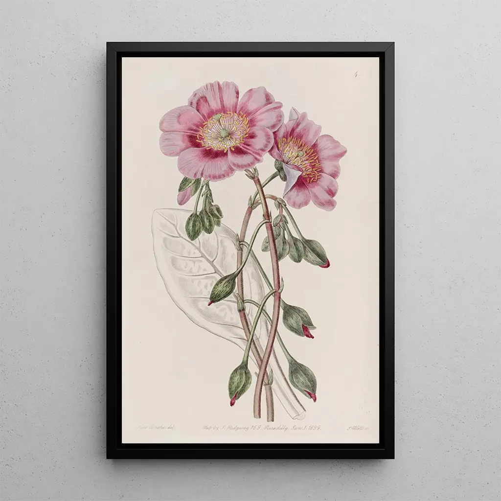 Calandrinia decolorée : a subtle and captivating beauty The art print of the Calandrinia decolorée is a true tribute to nature’s delicacy. This piece, with its subtle shades of violet and green, evokes a peaceful and contemplative atmosphere. The lithography technique used by Sydenham Edwards faithfully captures the textures and shapes of this plant, creating a lively tableau. Every detail, from the petals to the stems, is carefully highlighted, inviting the viewer to explore the richness of flora. The Calandrinia decolorée, though less known, reveals a discreet beauty that deserves to be celebrated. Sydenham Edwards : a master of botanical art Sydenham Edwards, a botanical illustrator from the early 19th century, made his mark with his unique approach to illustration. Working in a context where science and art converged, he was able to capture the essence of plants with remarkable precision. His works, including the Calandrinia decolorée, are the result of collaboration with eminent botanists, demonstrating his commitment to science. Edwards skillfully combined scientific rigor with artistic sensitivity, making him an essential figure in botanical illustration. A decorative acquisition with multiple advantages The art print of the Calandrinia decolorée is a decorative piece that harmoniously fits into various spaces, whether in a living room, office, or bedroom. Its palette of soft, soothing colors adds a touch of nature and serenity to your interior. The quality of the print ensures exceptional fidelity to the details of the original work, paying homage to Edwards’ talent. By choosing this piece, you add an artistic and cultural dimension to your decor, while celebrating the discreet beauty of plants. It is a piece that invites contemplation and escape.