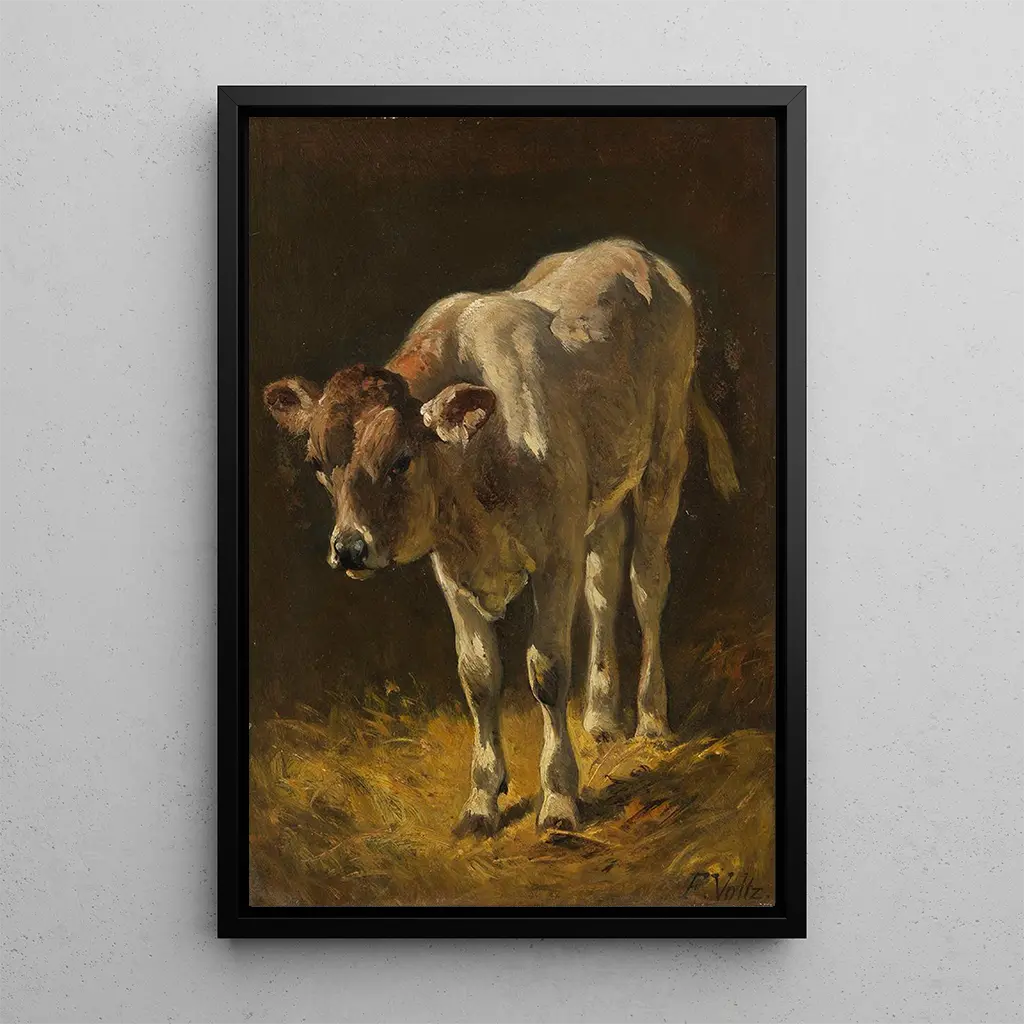 Painting Calf in the Stable - Friedrich Voltz | Art print Source: Tableau Veau dans l'étable - Friedrich Voltz | Reproduction