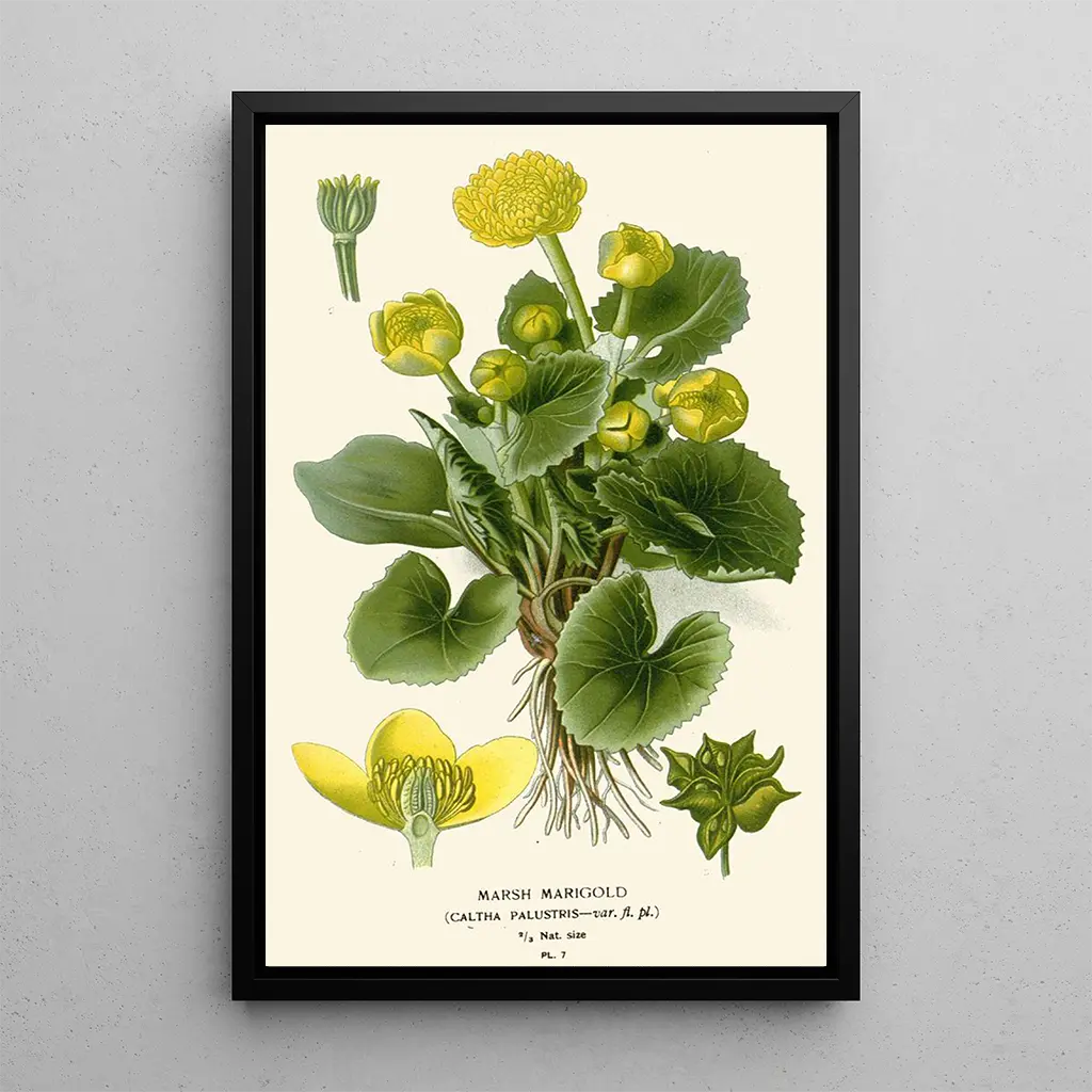 Caltha des marais : a dance of light and colors The art print of "Caltha des marais" by Edward Step immerses us in a vibrant natural universe, where shades of yellow and green blend harmoniously. This canvas evokes the ephemeral beauty of marsh flowers, illuminated by a gentle ray of sunshine. The meticulous details of the petals and leaves, combined with a blurred background, create an almost dreamlike atmosphere. The artist manages to capture the delicacy of nature, inviting the viewer to pause and contemplate the splendor of the surrounding elements. This piece is a true homage to aquatic flora and the serenity it inspires. Edward Step: a pioneer of naturalist art Edward Step, active at the end of the 19th century and the beginning of the 20th century, is known for his faithful representations of nature. Influenced by the naturalist movement, he skillfully combined scientific precision with artistic sensitivity. His works, often dedicated to botany, reflect a passion for the details and beauty of plants. Step also contributed to the popularization of botany through his writings and illustrations. His ability to capture the essence of flowers and landscapes made him an important figure in the field of naturalist art, and "Caltha des marais" is a perfect example. A decorative acquisition with multiple assets The art print of "Caltha des marais" is a decorative piece that fits perfectly into various spaces, whether in a living room, office, or bedroom. Its soft color palette brings a touch of freshness and serenity to your interior. The quality of the print guarantees remarkable fidelity to the details of the original work, while offering undeniable aesthetic appeal. By choosing this canvas, you opt for a decoration that evokes the beauty of nature while adding an artistic note to your environment. It is an invitation to contemplation and escape, a true asset for your interior decoration.