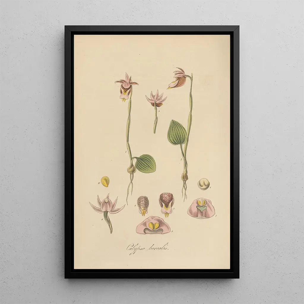 Calypso borealis : a wild elegance of nature The art print of Calypso borealis transports us to the damp, shaded undergrowth, where this rare orchid blooms with delicate flowers. With its soft shades of violet and white, this plant evokes a natural grace that catches the eye and invites contemplation. William Jackson Hooker's engraving technique highlights the subtle details of each flower, creating an atmosphere that is both serene and enchanting. This painting, a true homage to the ephemeral beauty of flora, is an invitation to discover the hidden treasures of nature. William Jackson Hooker : a master of botanical illustration William Jackson Hooker, an emblematic figure of the 19th century, marked the history of botanical illustration with his meticulous and artistic approach. As a botanist, he contributed to the classification of species while capturing their essence on paper. His romantic style, influenced by the scientific discoveries of his time, allowed him to marry precision and aesthetics. Hooker's works, such as Calypso borealis, are not only scientific documents but also art pieces that celebrate the diversity and beauty of the plant world. A decorative acquisition with multiple advantages Choosing an art print of Calypso borealis is to enrich your interior with a work of art that combines beauty and elegance. Whether in a living room, office, or bedroom, this canvas adds a touch of nature and serenity to your decor. The quality of the print ensures remarkable fidelity to the details of the original work, allowing you to appreciate each nuance and shape. With its aesthetic appeal, this art print harmoniously fits into various interior styles, making it a perfect choice for enthusiasts of botany and floral art.