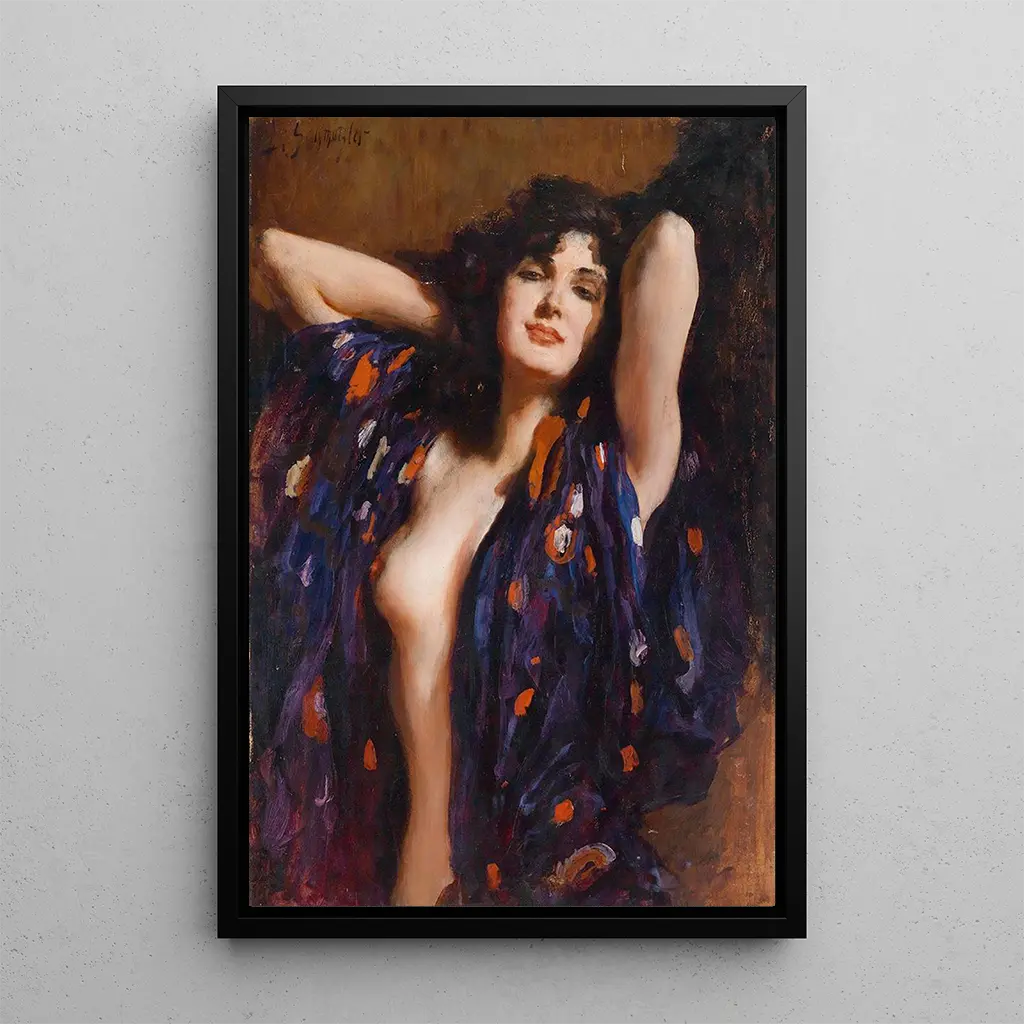 Captivating Gaze: An Exploration of Feminine Beauty In this mesmerizing art print, Leopold Schmutzler invites us to delve into the intimacy of a captivating gaze. The composition, centered on a woman's face, is bathed in soft, warm colors that evoke the tenderness of a suspended moment. Shades of pink and beige blend harmoniously, while delicate shadows highlight the finesse of the features. Schmutzler's technique, which combines realism and impressionism, creates an atmosphere that is both soothing and intriguing, as if the depicted woman is confiding a secret to us. This art print is a true ode to feminine beauty, capturing the very essence of grace. Leopold Schmutzler: a master of portraiture at the turn of the 20th century An Austrian artist active in the early 20th century, Leopold Schmutzler is renowned for his portraits of women, often imbued with delicate sensuality. Influenced by the Art Nouveau movement, his style is characterized by flowing lines and a keen attention to detail. Schmutzler was able to capture the spirit of his era, where the depiction of women evolved into a celebration of beauty and emotion. His works, frequently exhibited in prestigious galleries, testify to his talent and significance in the artistic landscape of his time. The art print "Captivating Gaze" fits perfectly within this tradition, reflecting a modern sensibility. A decorative acquisition with multiple assets The art print of "Captivating Gaze" is a decorative piece that will enhance your interior, whether in a living room, office, or bedroom. Its printing quality guarantees fidelity to the colors and details of the original artwork, allowing you to fully enjoy its aesthetic appeal. This art print draws the eye and sparks conversations, adding a touch of elegance and charm to your decor. By choosing this canvas, you opt for a piece that not only beautifies your space but also tells a story — that of timeless beauty captured by a talented artist.