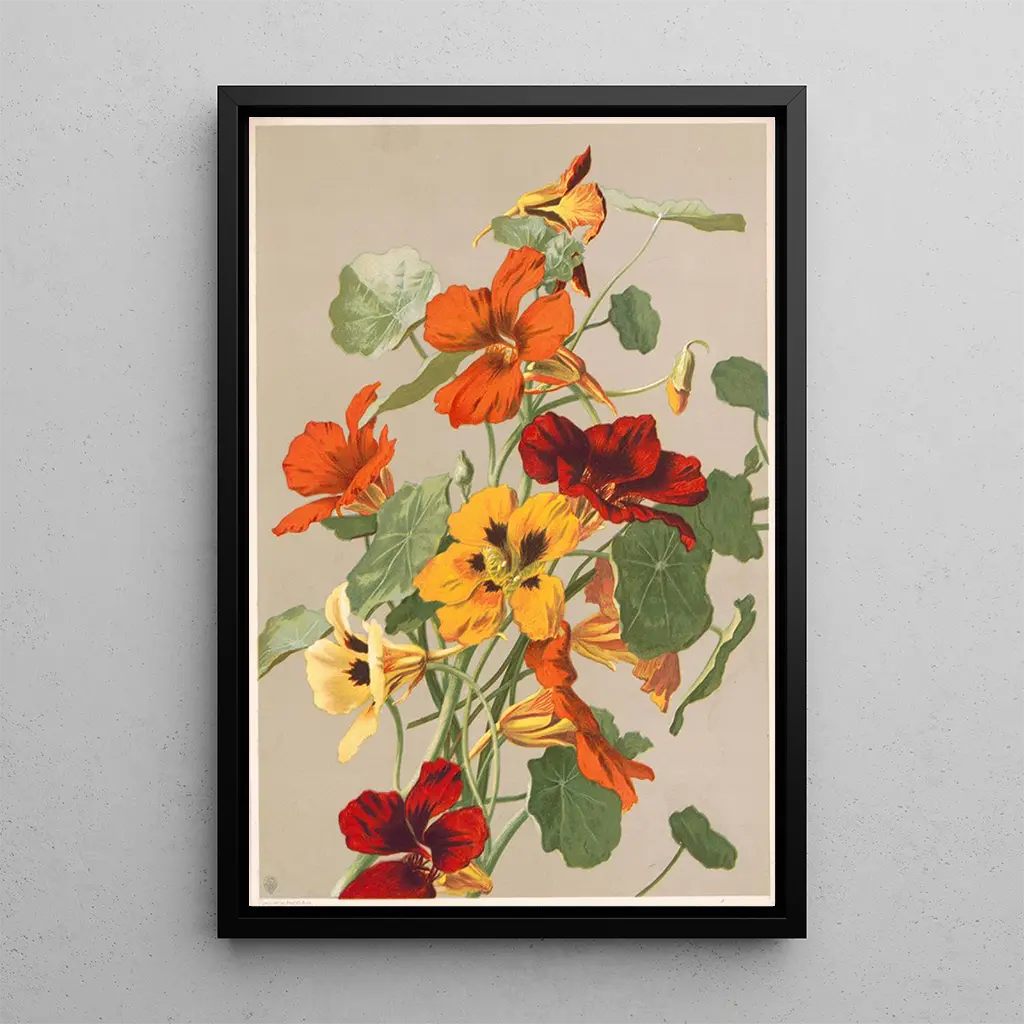 The art print of Nasturtiums is a decorative piece that fits perfectly into various spaces such as the living room, office, or bedroom. Its print quality and fidelity to the original work make it an ideal choice for those wishing to add a touch of color and life to their interior. With its undeniable aesthetic appeal, this floral poster evokes freshness and joy, transforming any wall into a true art gallery. Treat yourself to this canvas to brighten your daily life and create a warm, welcoming atmosphere.